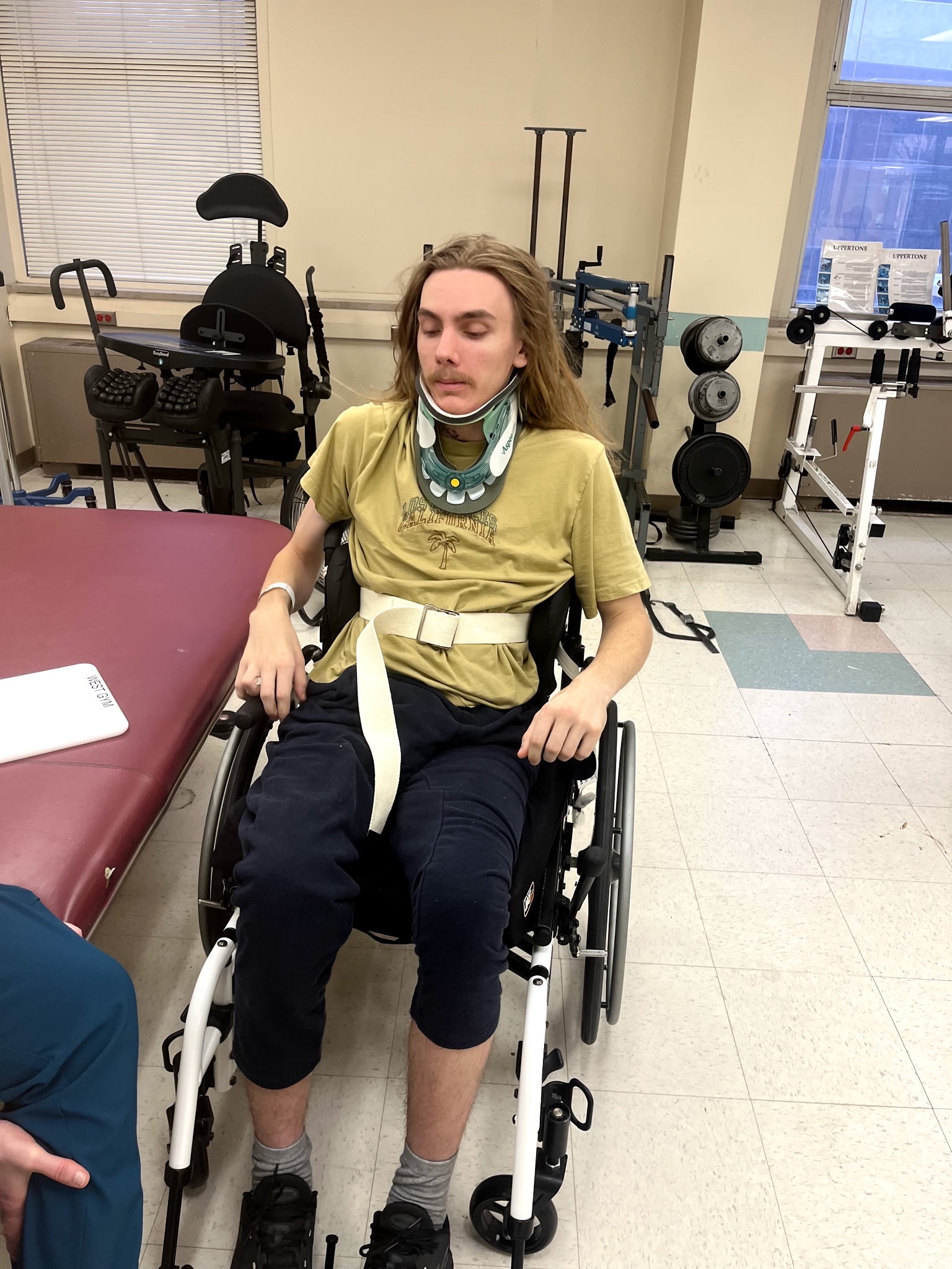Considering the extent of his injuries, Tyler has made great progress & can now wiggle his feet and at some points has regained movement in his legs. Although still very weak, he now has function in his hands. Due to being wheelchair bound, he is unable to currently live independently at his apartment and is in the care of his grandparents at their home. He has been receiving weekly in-home physical therapy but his therapist has strongly advised that Tyler really needs outpatient therapy in order to make progress.