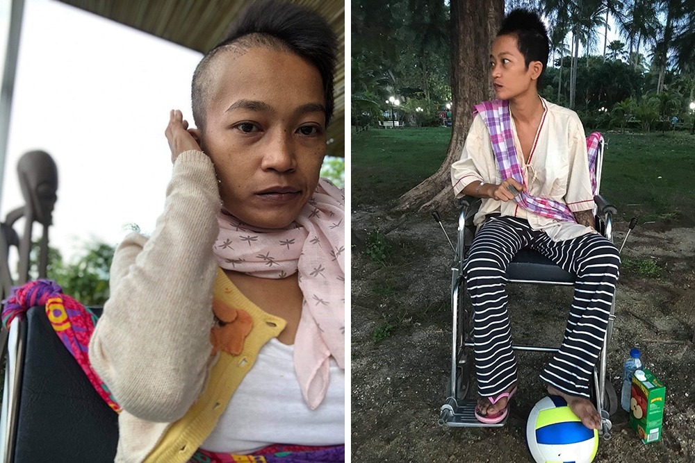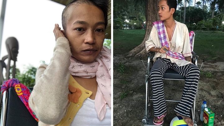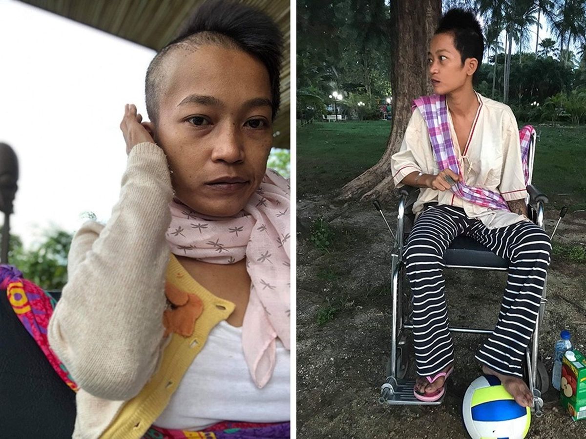 She moved back to Bangkok with her husband. Unfortunately, they had to separate. This event gave her traumatic experiences for at least a few years. After having many stressful events, she was trying to rebuild her new life, as always she had a positive and strong attitude. Then, this cancer tragedy came in her life. Now, she is very challenged with her financial situation and depending solely on her sister's help. She is sleeping in the backroom of her sister's shop without having professional care for her disabled condition.