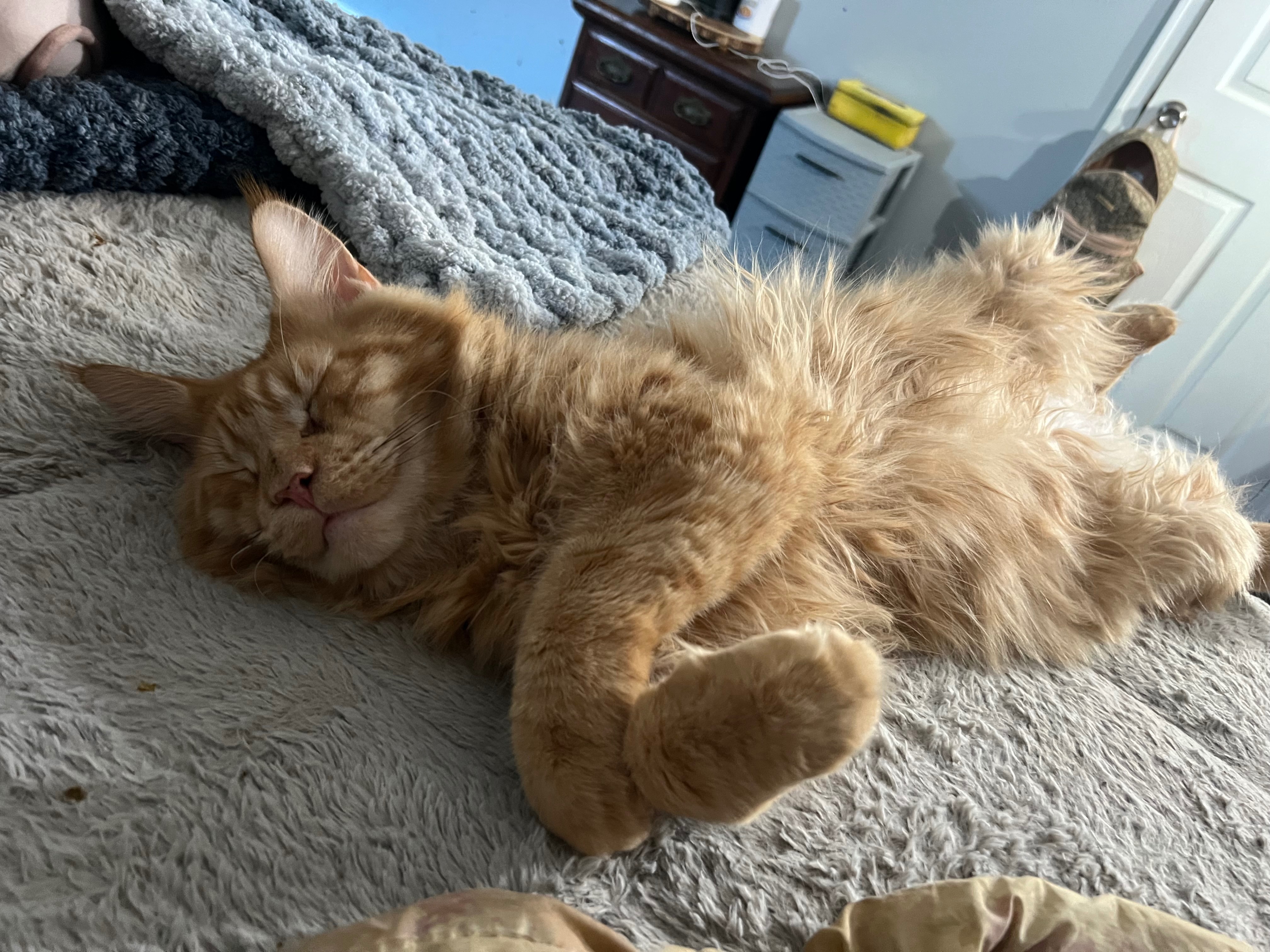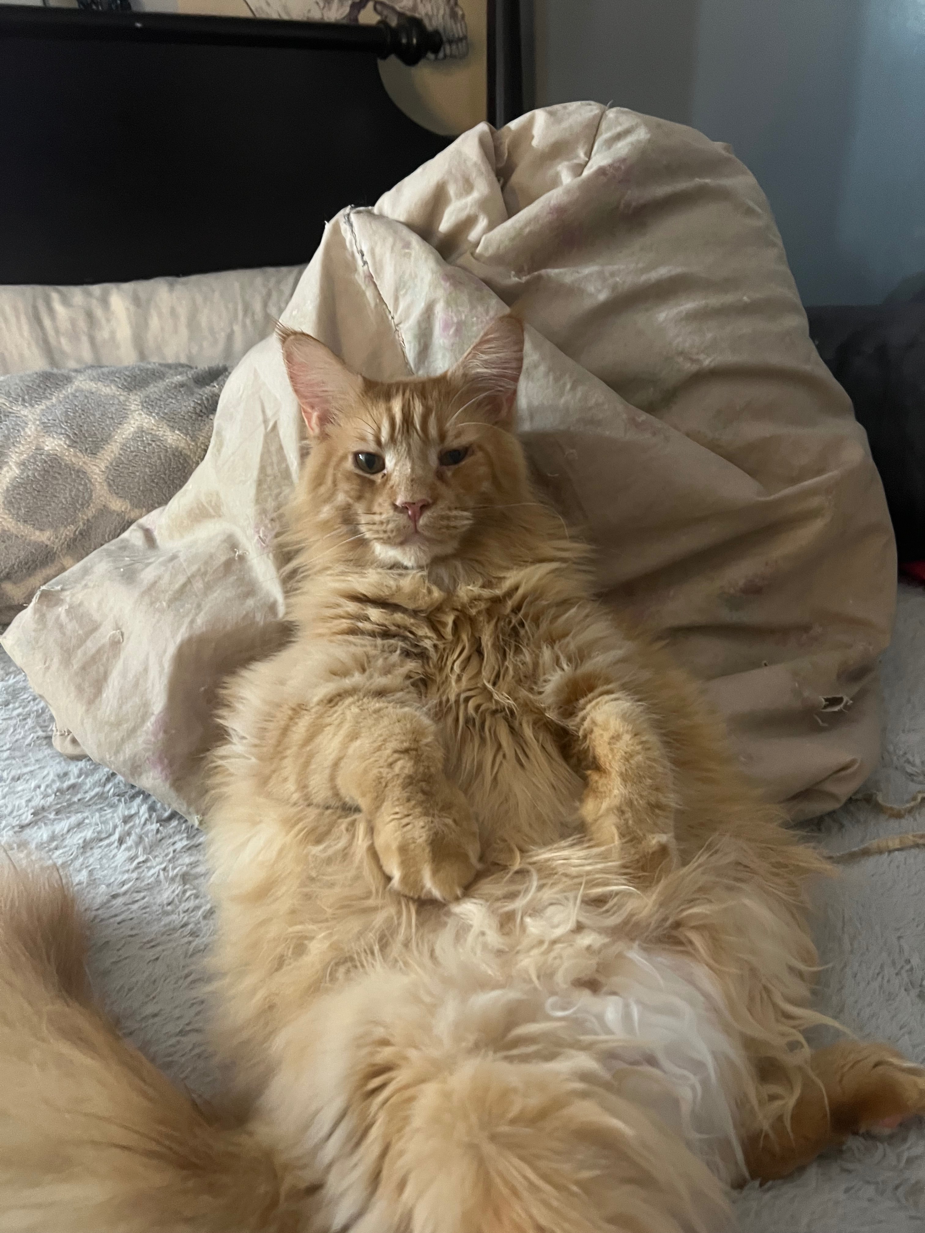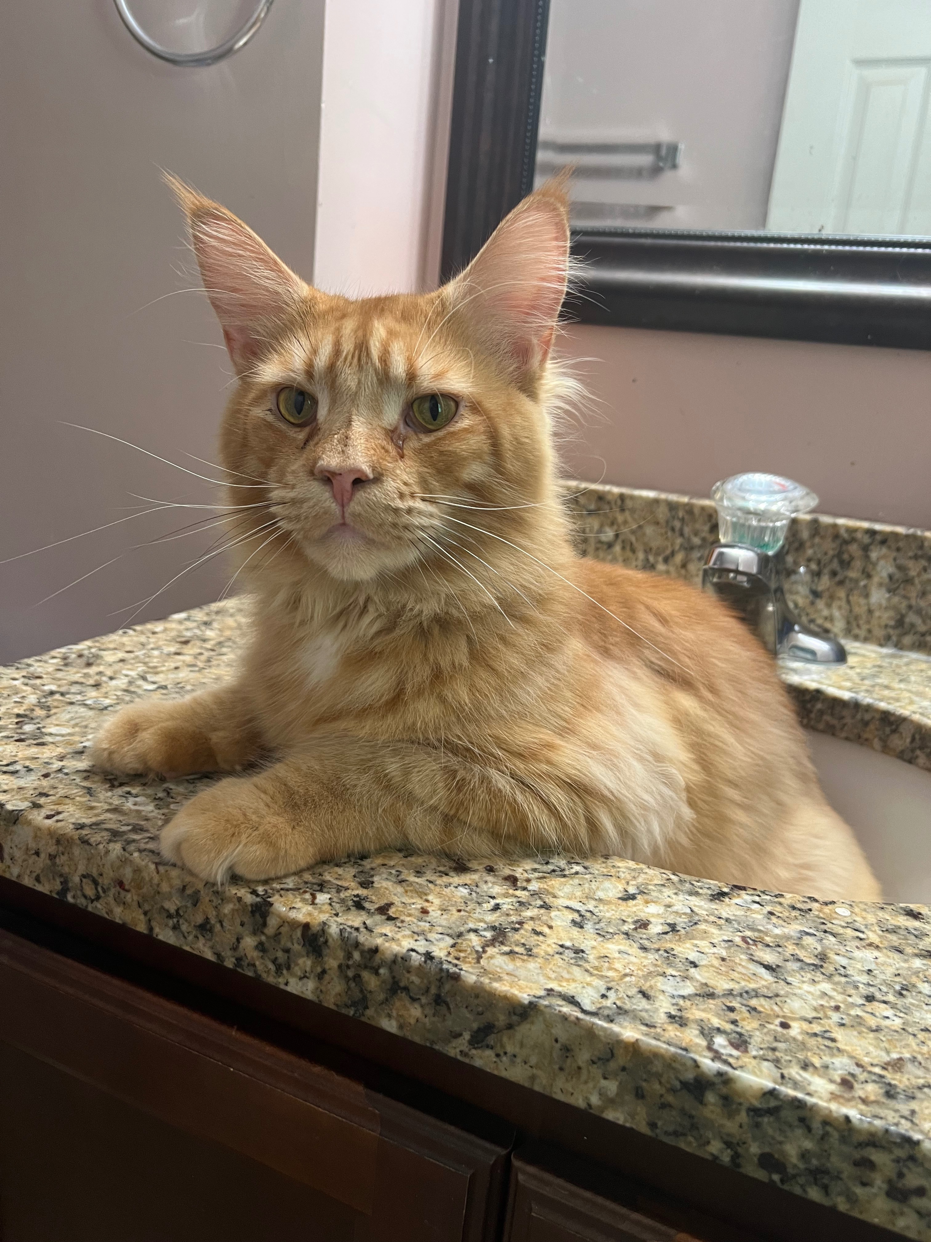 His name is Lil Swaggy Cheese, he’s a red Maine Coon. He has been an emotional support cat for my sister since his birth. He was the smallest runt and now over 20 lbs providing endless love and snuggles. He has the biggest personality and knows exactly when his momma is walking through the front door. All he wants is his person and more time to spend with her.