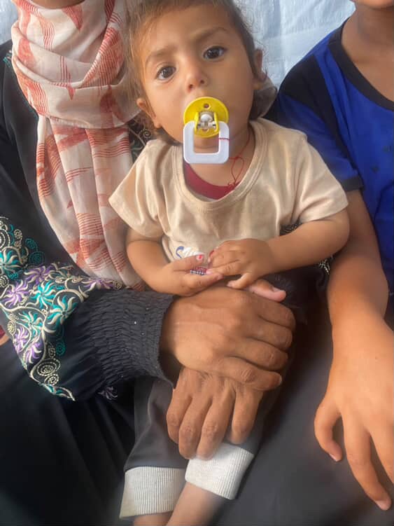 "I am Tahrir Al-Najjar, a woman from Gaza. I raise and care for my three daughters. My husband is injured and cannot work or provide support for us, as he is severely injured. My eldest and youngest daughters suffer from malnutrition and need help to provide food. They have been deprived of their most basic rights in life, such as education. They should have been in first and second grade, but because of the war, they were deprived of education. I have a little girl named Lubna. She suffers from delayed growth and malnutrition, and needs special treatment and nutrition. She cannot move because of her illness.