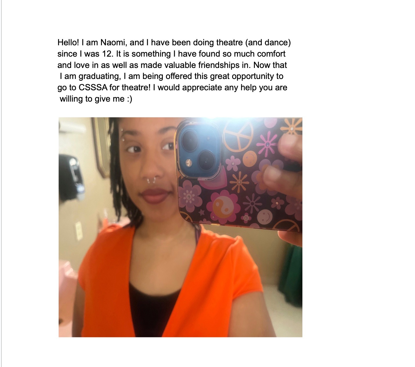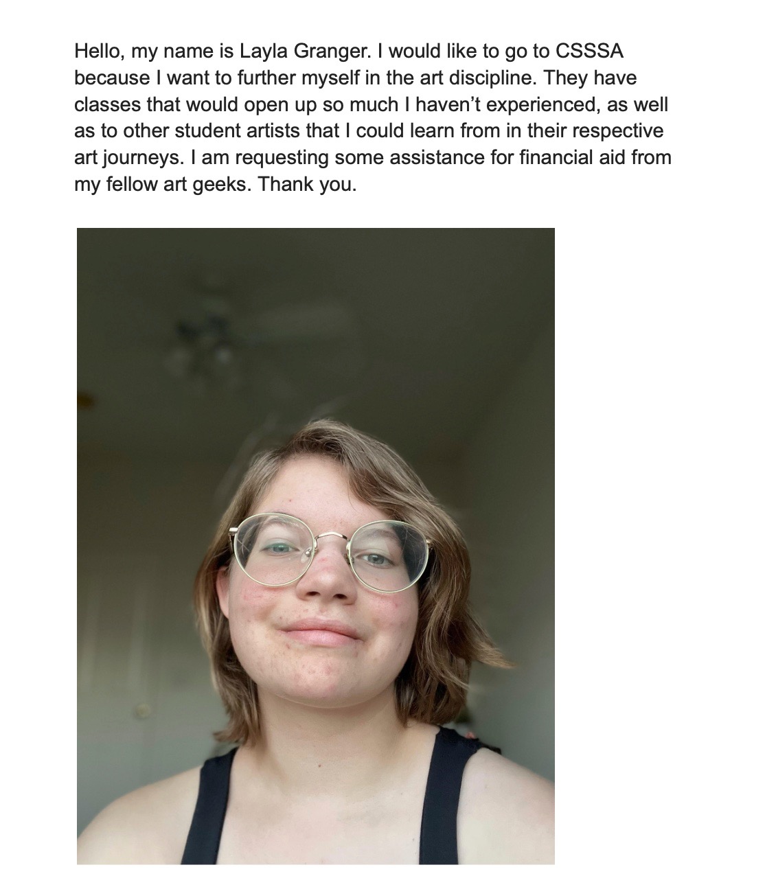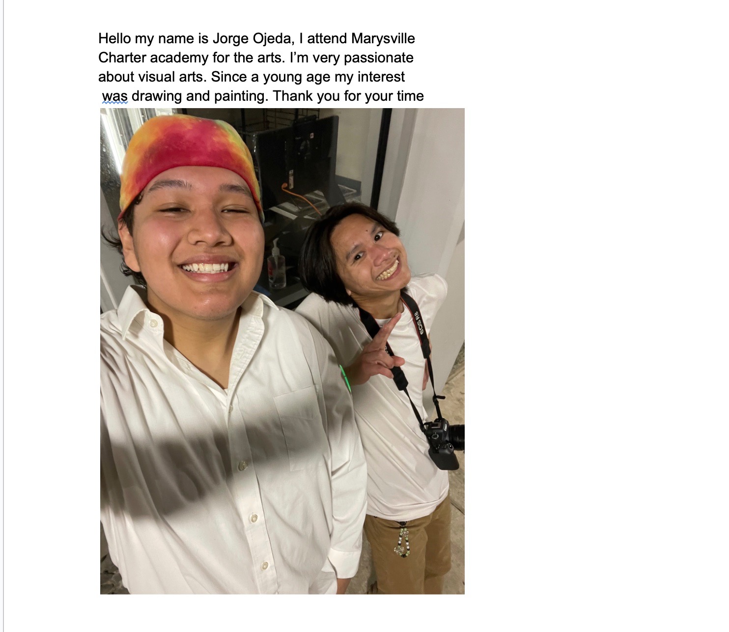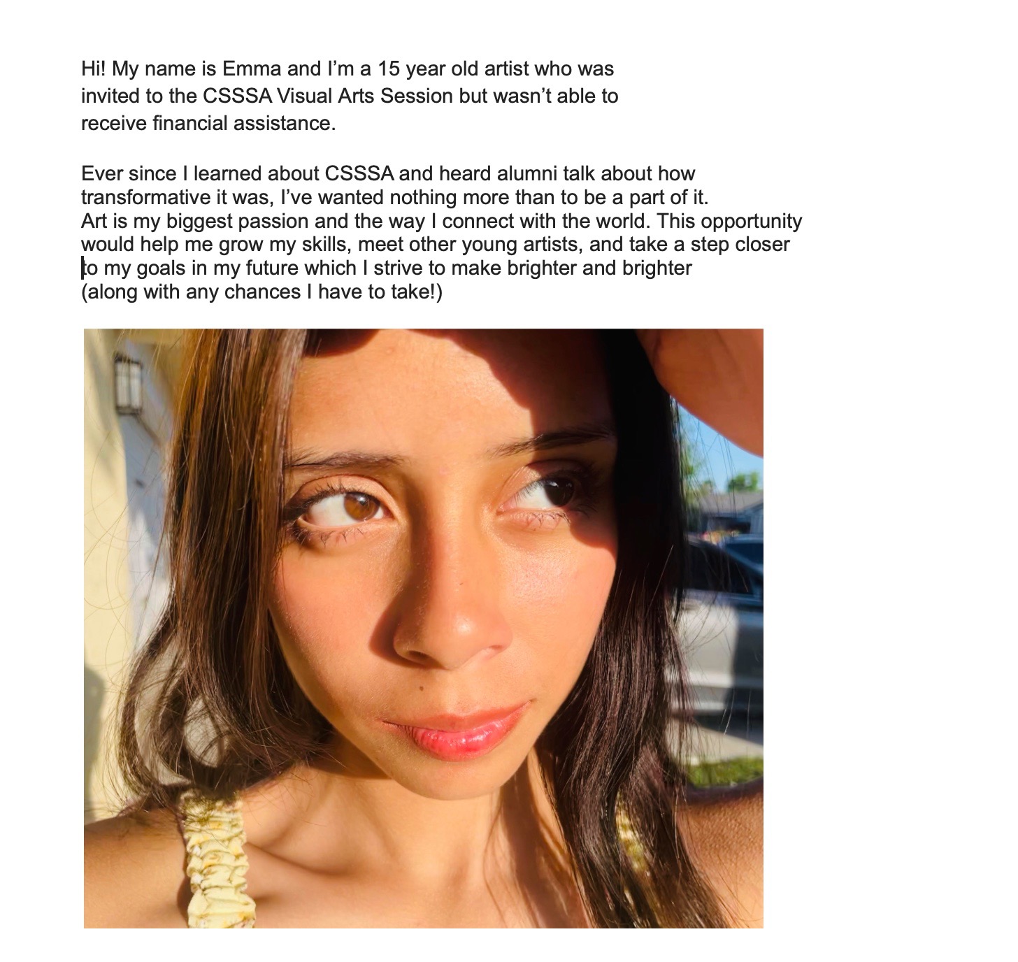 My name is Honor Giardini, and I'm a senior at Marysville Charter Academy for the Arts. I am a writing department alum of California State Summer Schools for the Arts, a prestigious month long arts education program hosted on CalArts's campus.