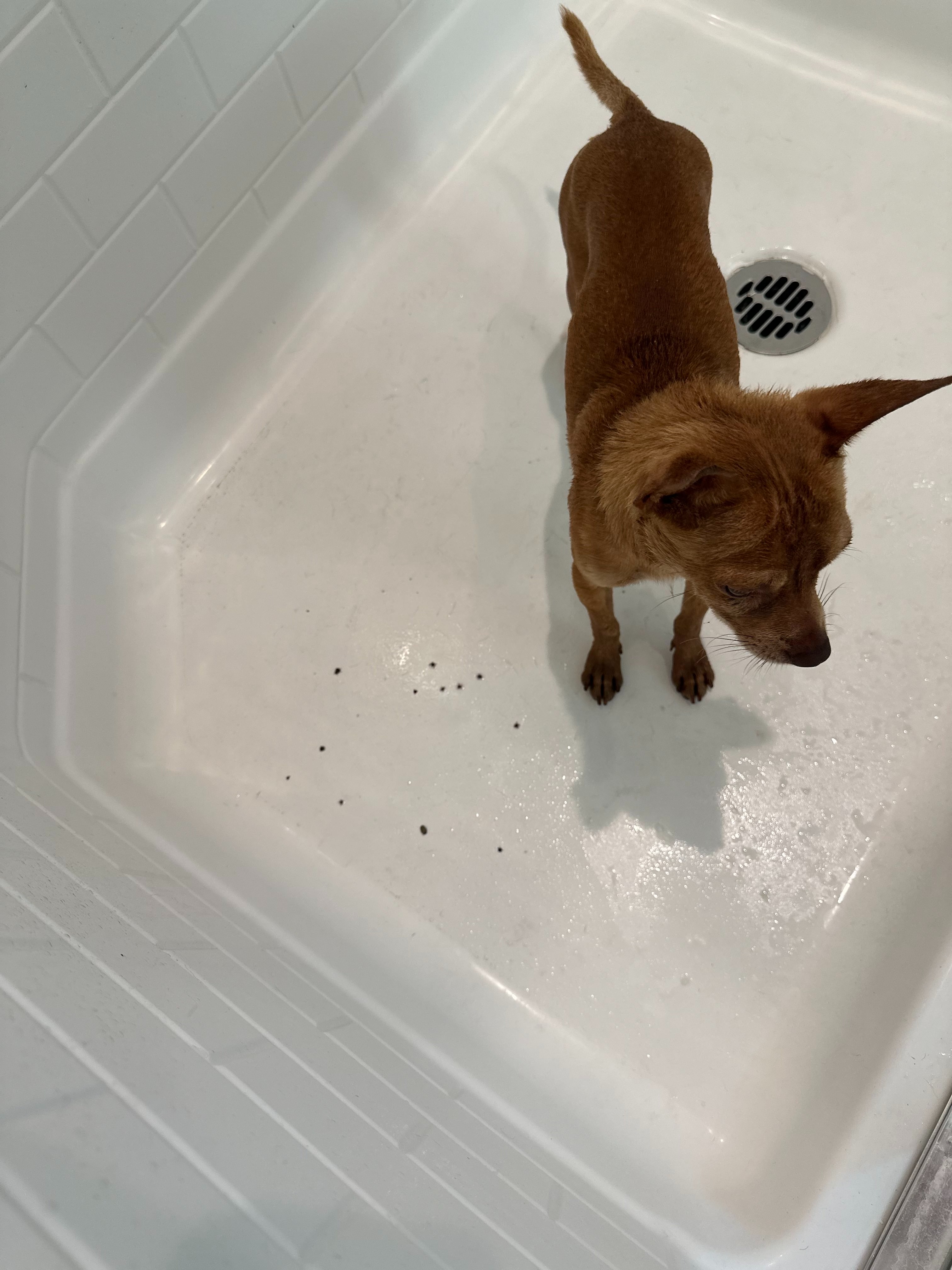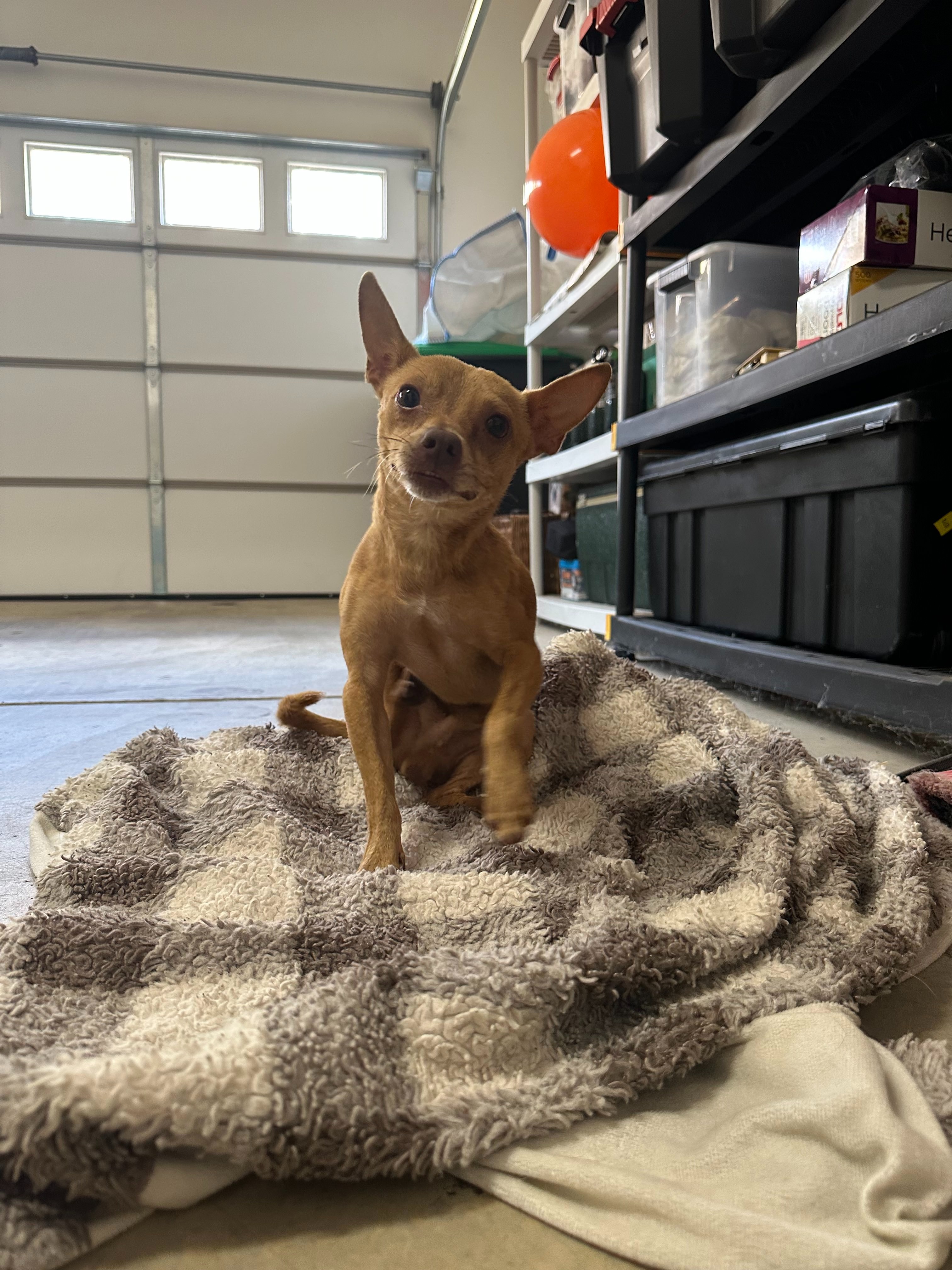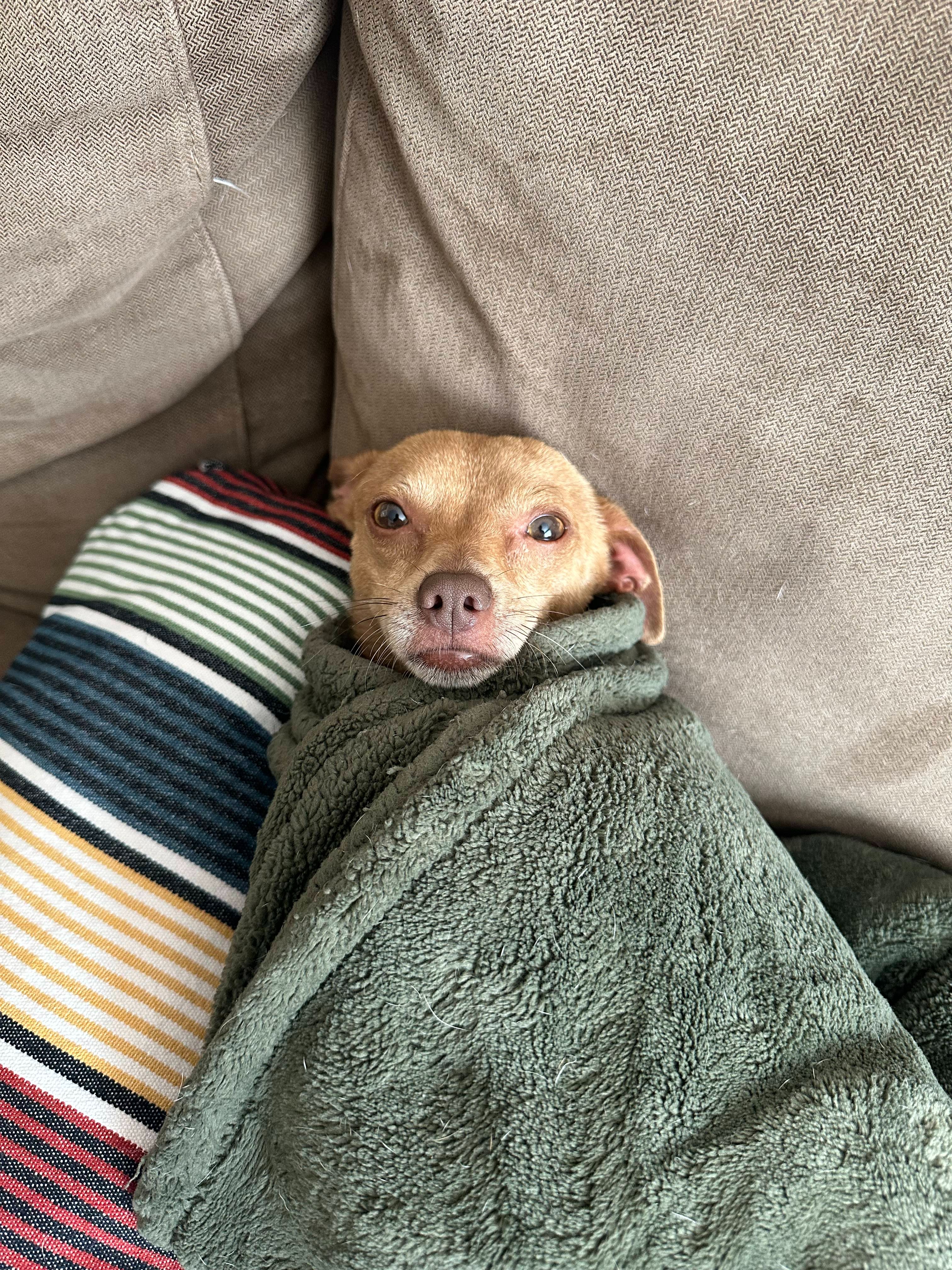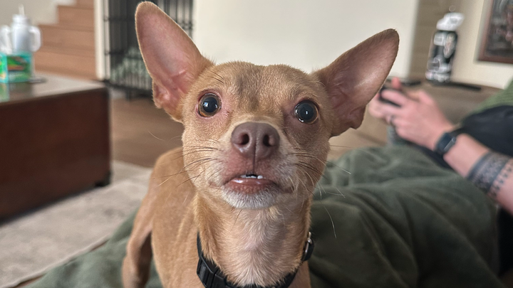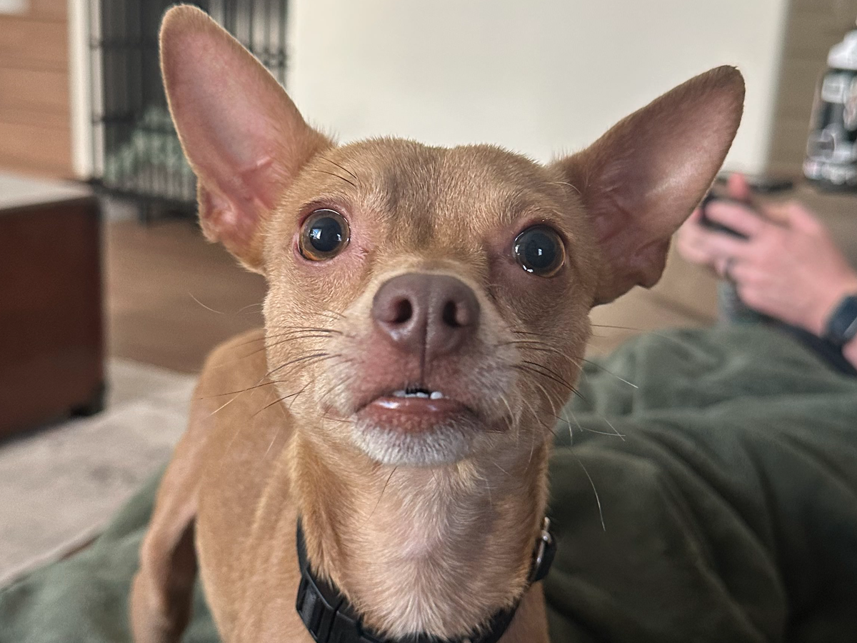 A sweet, goofy little Chihuahua who’s been through more than any pup should. His former owners didn’t want him anymore and kicked him out, leaving him to fend for himself. For 1–2 weeks, Taquito was running the neighborhood alone until I found him on a walk with my own dogs and managed to catch him.