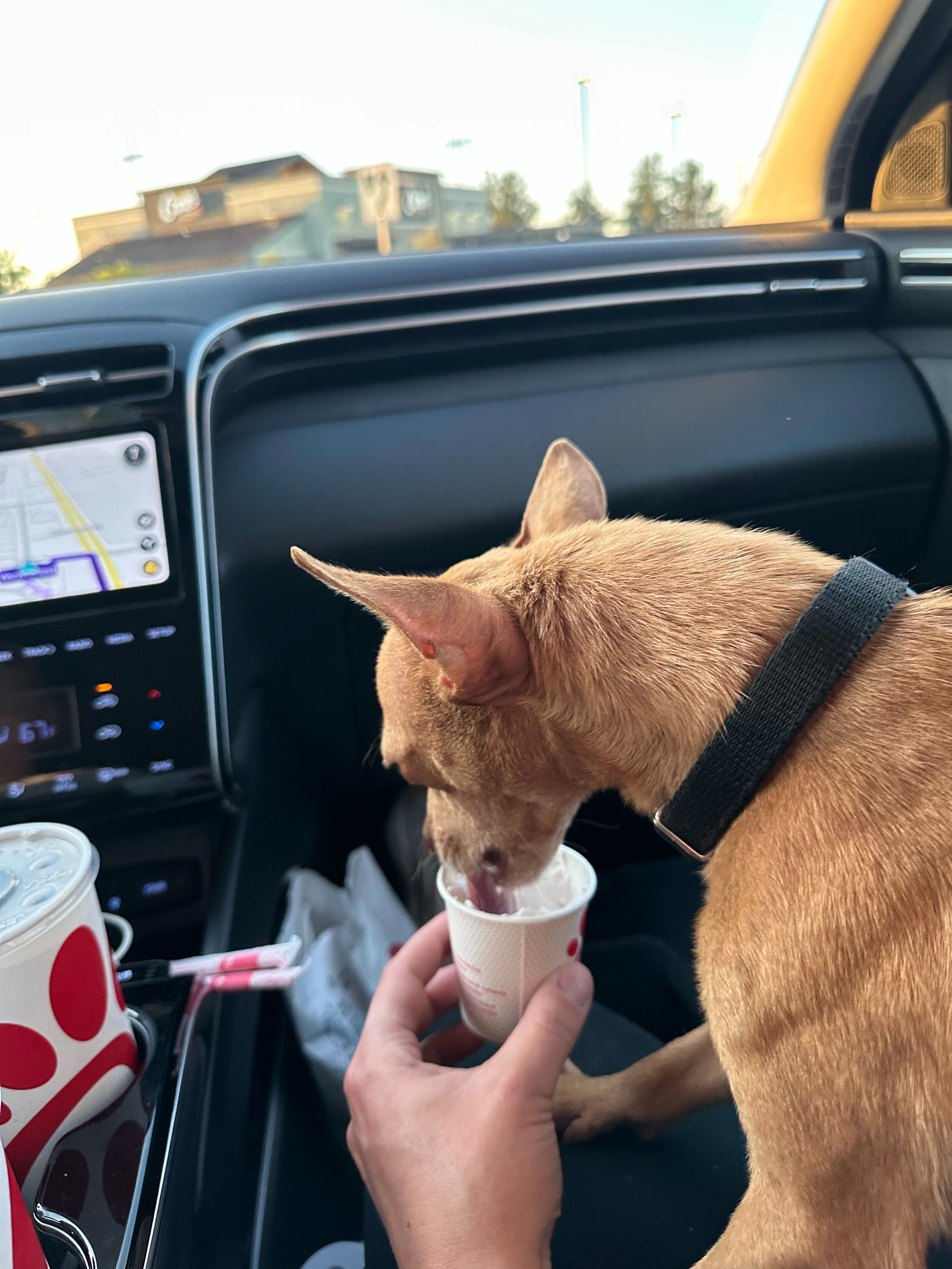 Since then, I’ve taken him to the vet for a full checkup. He’s about a year old, now up-to-date on vaccines, and overall healthy, just in need of some TLC and proper nutrition (which he’s finally getting! His appetite has come back strong!). He’s even had his first pup cup and is starting to play and warm up to our dogs.