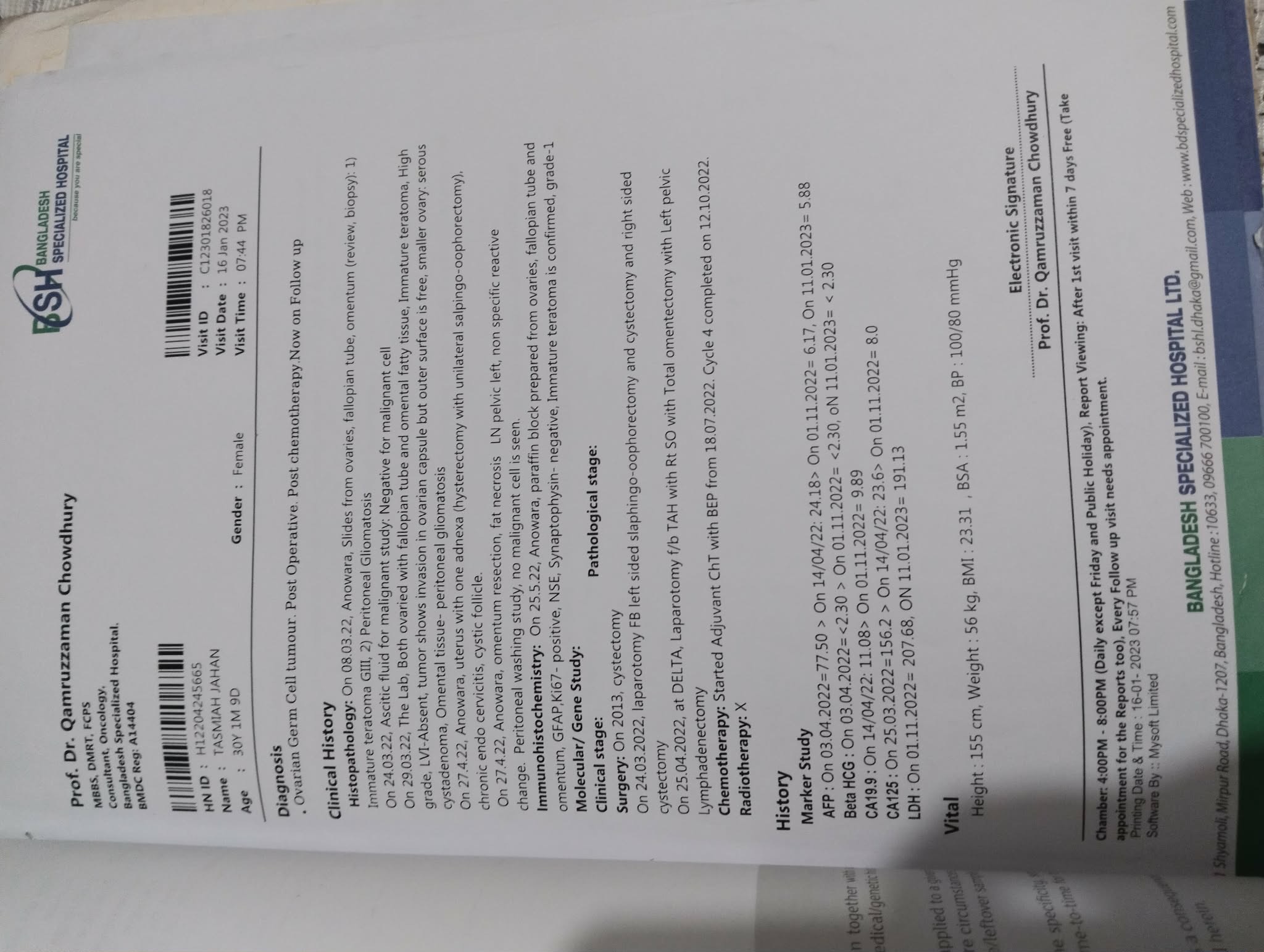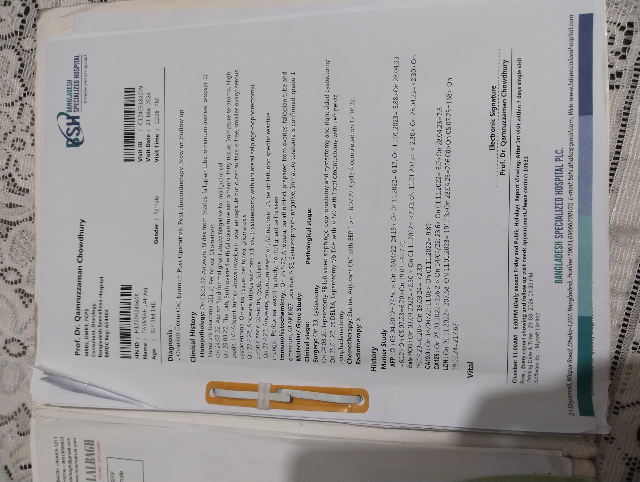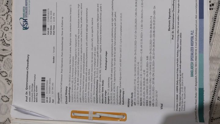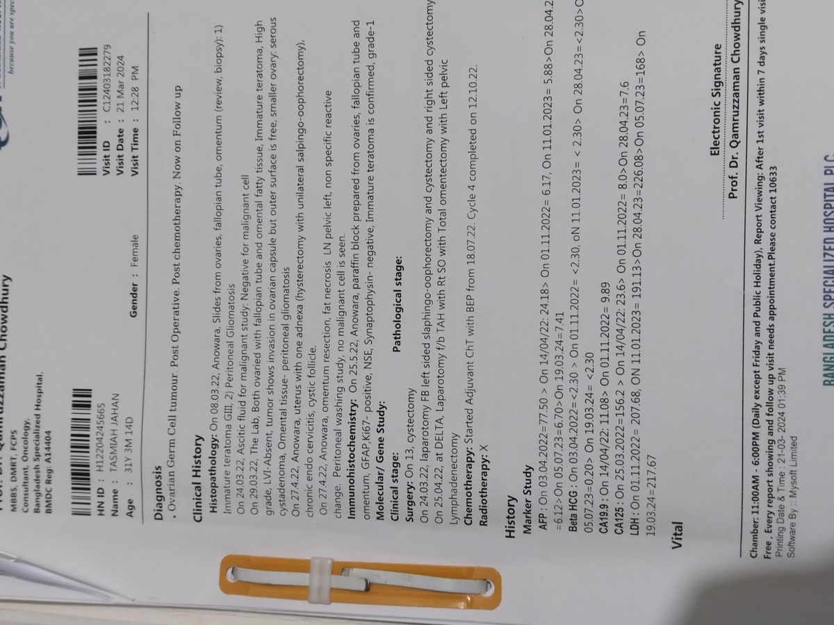 Tasmiah is a dedicated mother to a 9-year-old daughter, and her life has always revolved around nurturing and supporting her child. She has been courageously battling ovarian cancer since 2022. I have known her personally since 6th standard, when we were classmates in school, and over the years she has consistently remained the same kind, gentle, and caring person I first came to know as a child. Known for her integrity, warmth, and thoughtful nature, Tasmiah has always been someone who prioritizes family, relationships, and the well-being of others. Her sense of responsibility and selflessness have been evident in how she balances her own hardships while continuing to care for her daughter with patience and love. These qualities have become even more evident as she faces this life-altering illness with remarkable strength.