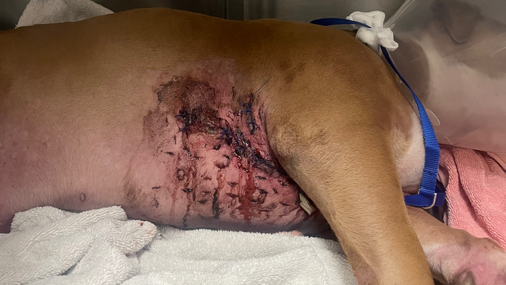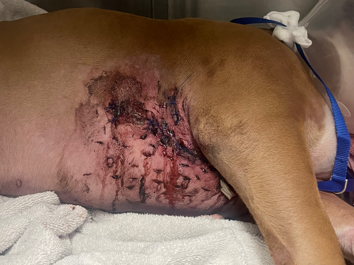 Hello, my name is Monique Richardson. I am the Mommy of taz aka Tasmanian Tasmanian recently had an accident this week, getting himself tangled up in his harness and falling in a pretty awkward position that caused him to be stuck on his side when that happened I took Taz straight to the vet the accident caused a mile to moderate soft tissue swelling at first then we got some medication and he was seeming to be better, but then he scratched himself in that area and that caused the area to get infected causing more pain and inflammation, then took him to the vet that we went to prior. They then told me that he had to go to the emergency room asap and he was not looking good.