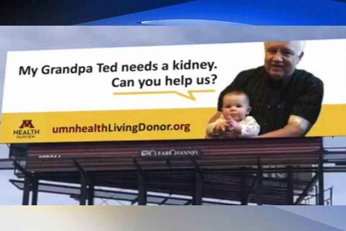 Ted Schweich is in desperate need of a Kidney transplant. We are going to create a billboard for Ted, along with some other media in the Minneapolis area to find that donor. There are over 110,000 people on a waiting list to get a kidney and if we can get a Kidney donor for Ted, he can by-pass the wait list, get off dialysis and have a better quality of life. Please note that if a donor is not a perfect match for Ted, and if that donor agrees to still save another life with a donation, Ted will be up next for a new kidney from a transplant chain of other donors. Time is running out for Ted and any donation for the billboard and its production is appreciated so we can get the word out for Ted. It only takes one donor to touch Ted's life and many others. If you or anyone that you know, need additional information please contact: umnhealthlivingdonor.org Thank you.