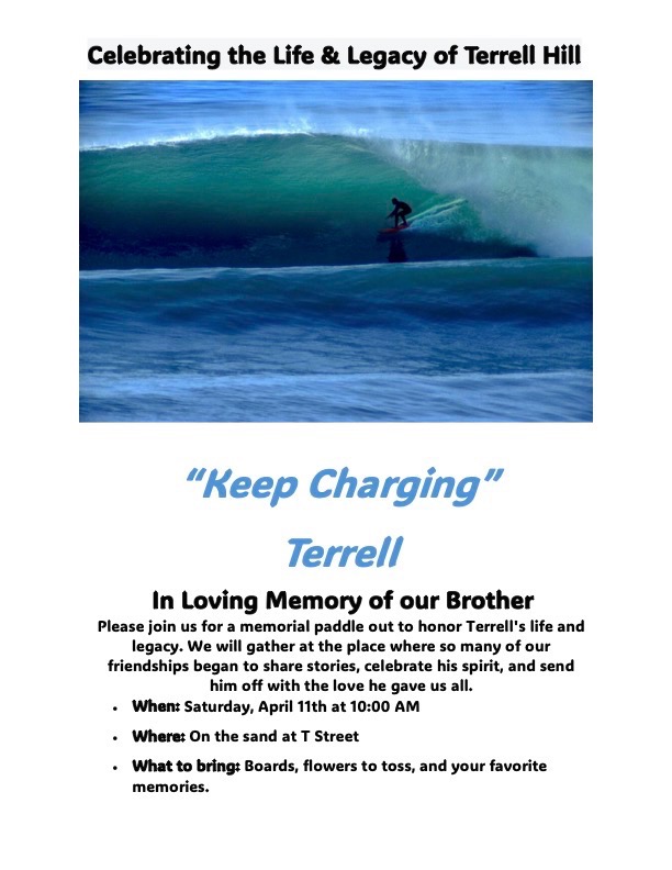 A paddle out will be held in his honor on April 11th, 2026, at 10:00am.
