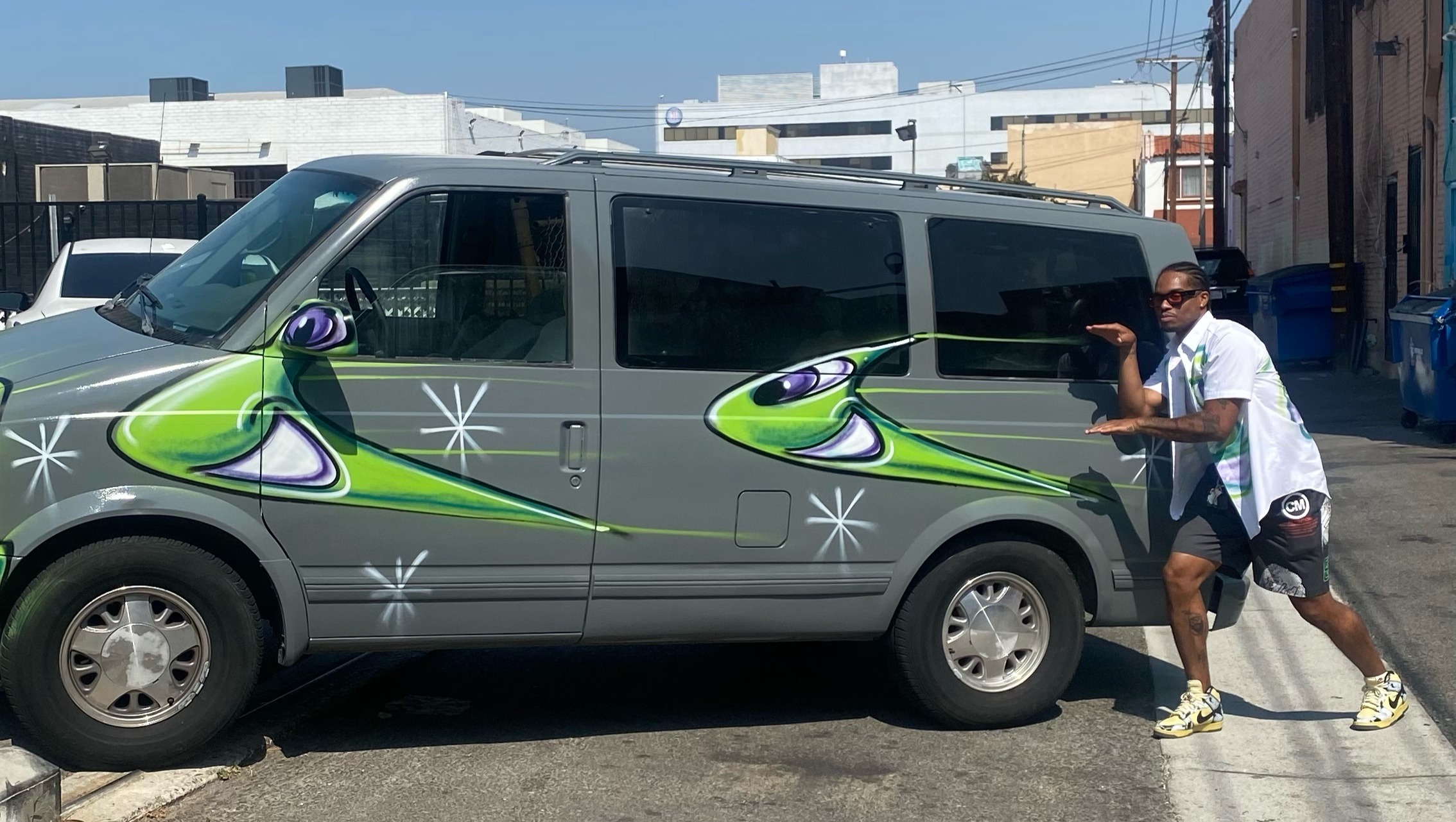 Here's some background about this fundraiser: I bought my family's 1995 Chevrolet Astro Van, in August last year and repaired it for use as a company vehicle as I was spending alot on U-haul trucks to go back and forth to markets. My good friend Andre Garcia helped me repaint the van's base coat, and then the legendary Kenny Scharf did what he calls a "Karbomb" on it, making it an incredibly unique art piece. We also painted my BMW earlier that year and I use it as a sponsorship vehicle to represent all the brands that are riding with me.