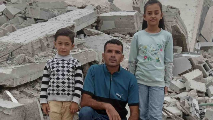 Hello, I am Khalil Al-Daghma. I am 31 years old. I have been married for ten years to my wife, Suha, who is 28 years old. I have two children, Mayar, who is 9 years old, and Ibrahim, who is 5 years old. I used to work as a farmer, and I used to live in a house from Asbat. I collected money and saved it, built a house of cement, and accumulated debts. But the war came and the occupation raided the two houses, the house that I was tired of building, and now I am homeless in tents. I ask you to help me collect money to rebuild my house. I thank you very much.