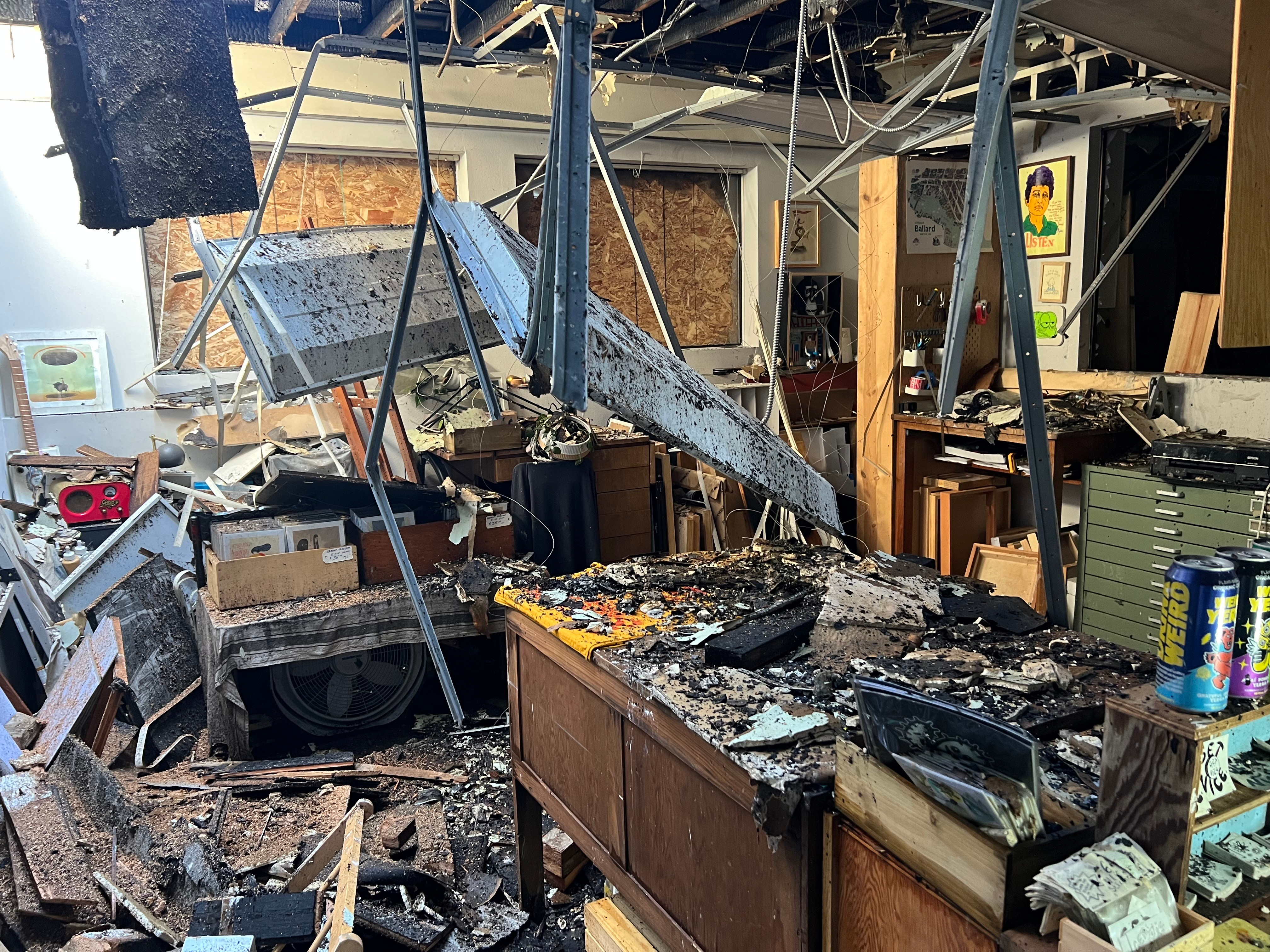 On Friday, August 8th, at around 8:45pm, a fire broke out behind The Ballard Collective building in Seattle, WA. First responders arrived quickly, but the flames had already swept through the back of the building, causing significant damage to multiple studios and galleries inside. Thankfully, no one was hurt—but the loss to our creative community is staggering.