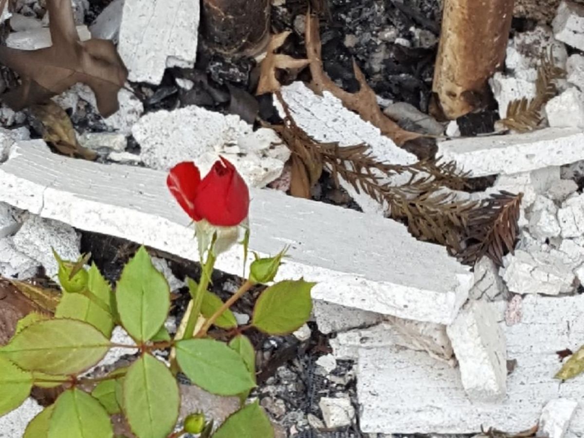 But today there was a sign of hope- a single rose amidst the ash and rubble!! I'm grateful for this rose. My sister took so many pictures of the flowers around the house before and I know it's something she misses. So here's a gift for you, Jess!! There will be many more again, in time ❤