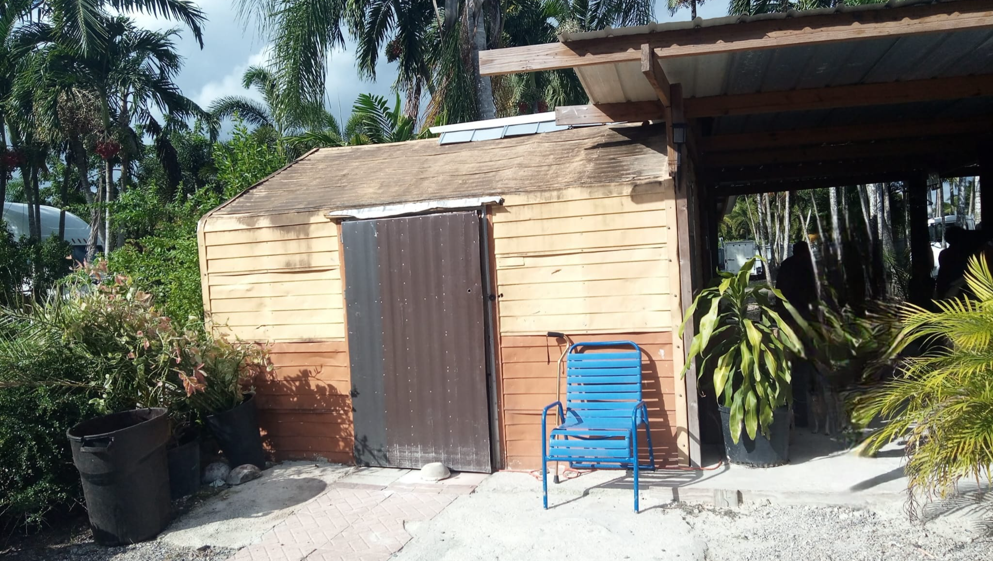 The mother and her two children have been living in an old storage shed, pictured above, for the last couple of months without electricity or running water.