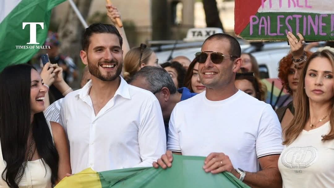 (Prime Minister Robert Abela and the leader of the opposition party Alex Borg at THIS year's Pride celebration in the country's capitol)