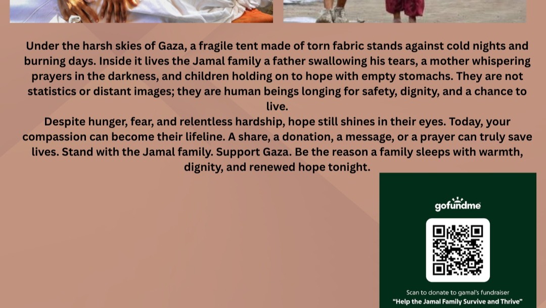In the rugged sands of Gaza, a tent made of torn fabric, offering neither protection from the cold nor from the heat, stands as a witness to indescribable patience and strength. A young family, the Jamal Family, isn’t asking for luxury just the basics of dignity: to be seen, heard, and helped.