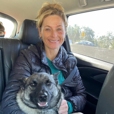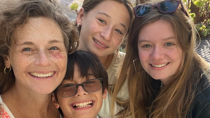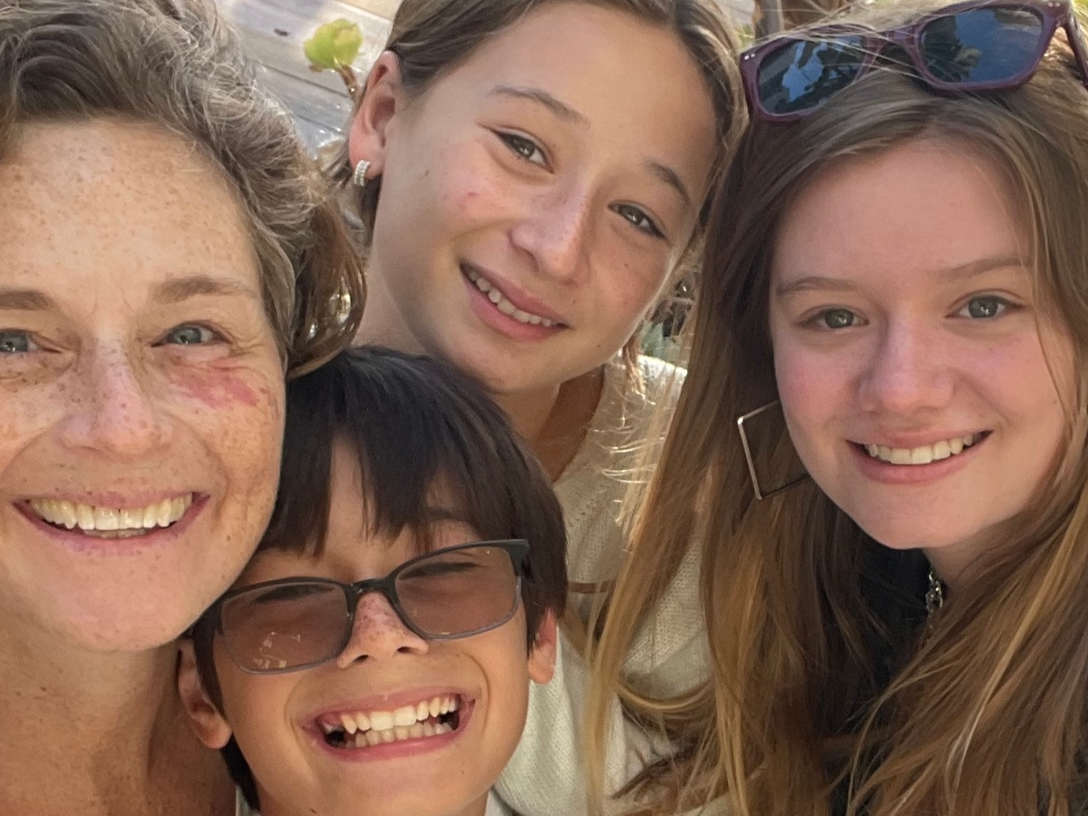 And yet, through all of it, she stayed a bright light for our kids, Mira (16), Matilda (13), and Wolfie (12). She drove them to school before taking herself to chemo. Made lunches. Designed lavish birthdays. Baked hundreds of cookies. Painted stunning work and built her online shop. Loved our puppy Sunny like she was a fourth child. She was still swimming 50 laps three months before this disease took her.