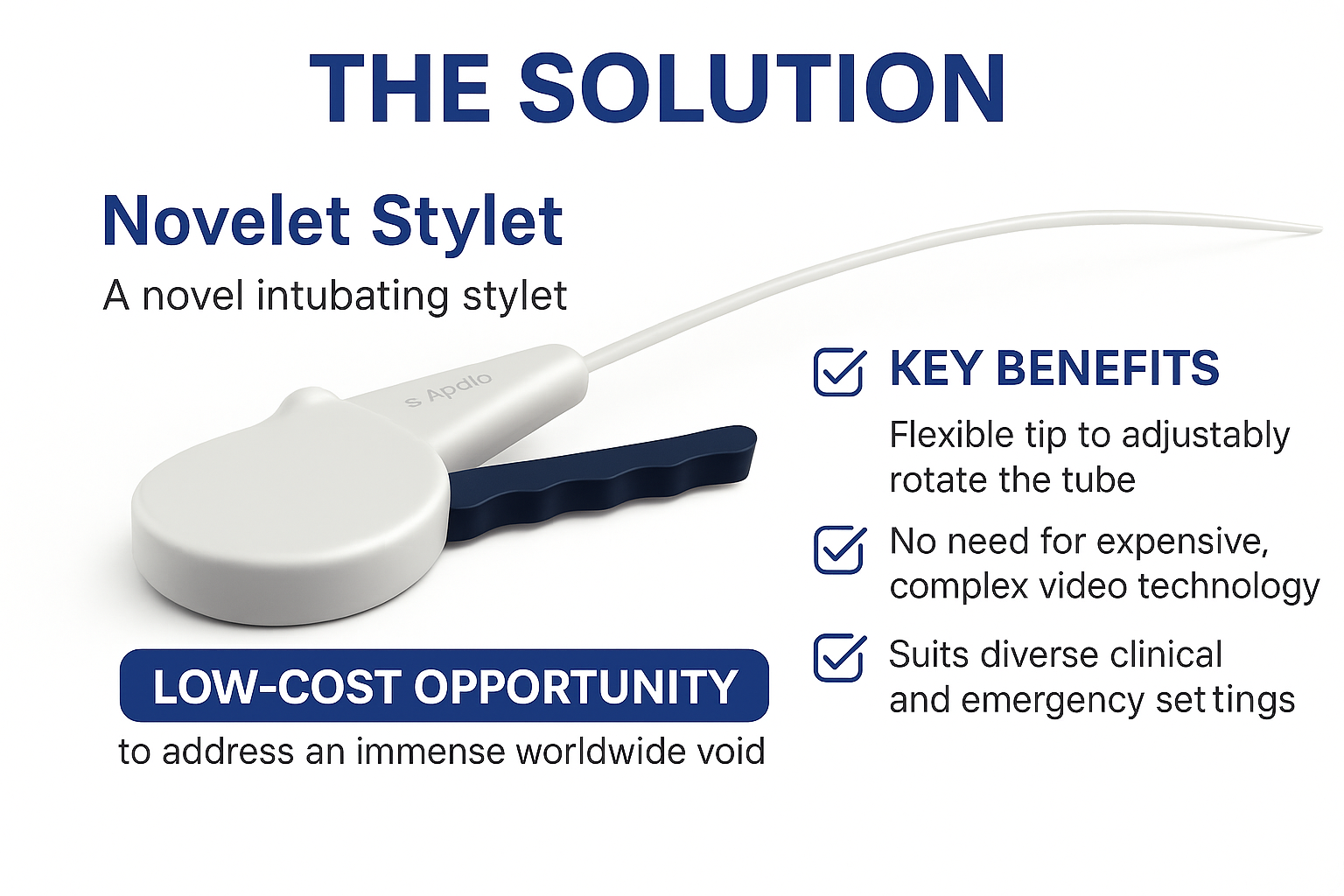 That’s why I helped design the Novelet™ Stylet, a simple but powerful device that allows medics, EMTs, and ER doctors to better align a breathing tube with a patient’s unique anatomy — without removing the tube and trying again. It’s real-time adjustability for a procedure where time is everything.