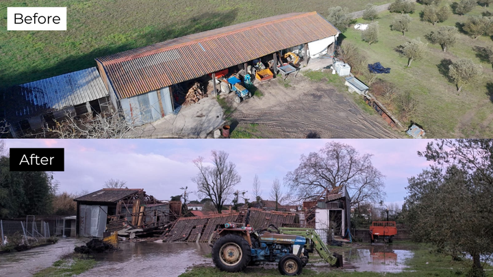 Our 30-year-old wooden barn — the operational heart of the farm — collapsed completely.
