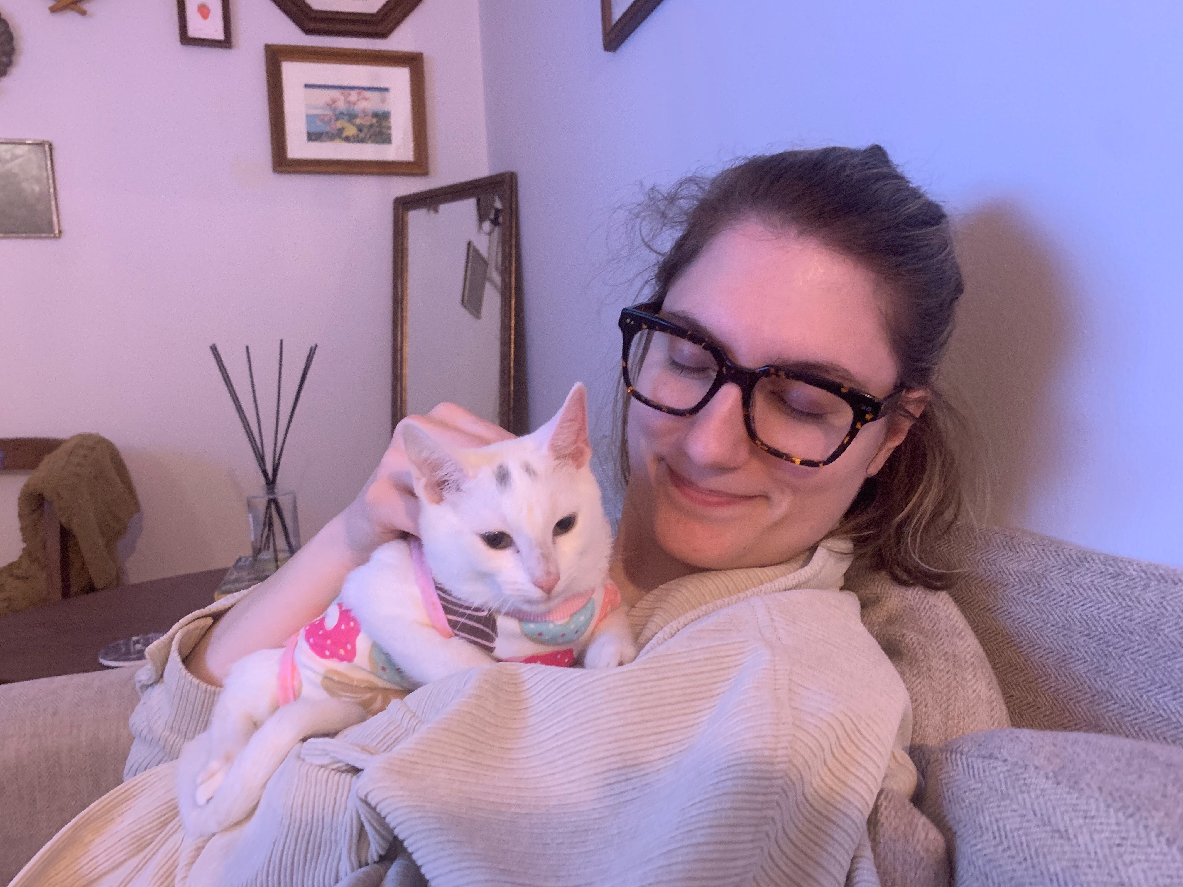 - Julie and Julia, with their cat Maya.