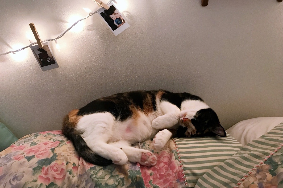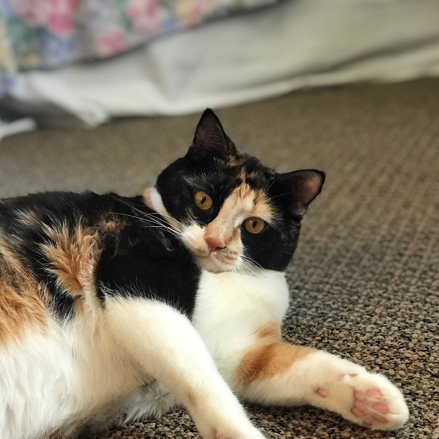 Our daughter Theodosia is the best kitty in the whole world. She's just under three years old, and has always had the most absolute biggest heart. She's normally a super playful and hilarious cat, she loves to play fetch. She'll bring back her cat toys and drop it off at our feet and wait for us to throw it again. She waits for us at the door when we get home from work. She snuggles up next to me when she knows I'm sad, and she wouldnt even think about saying no to a good brushing session.