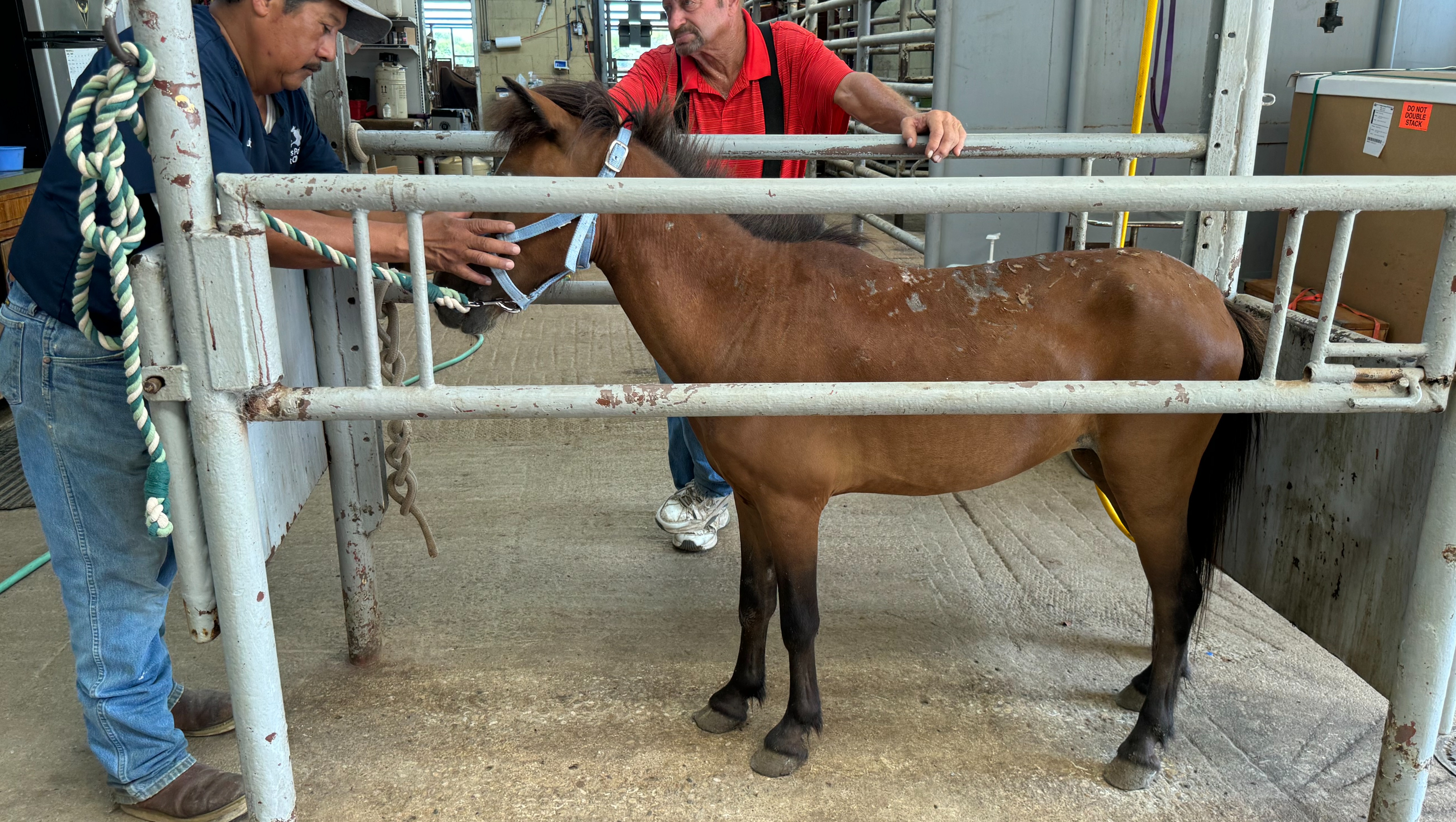 Tiny is currently spending his remaining quarantine period at a rescue in Texas where he's been treated for infections and parasites. He's eating and getting stronger every day, although he has to be isolated from any other horses to prevent disease transfer.