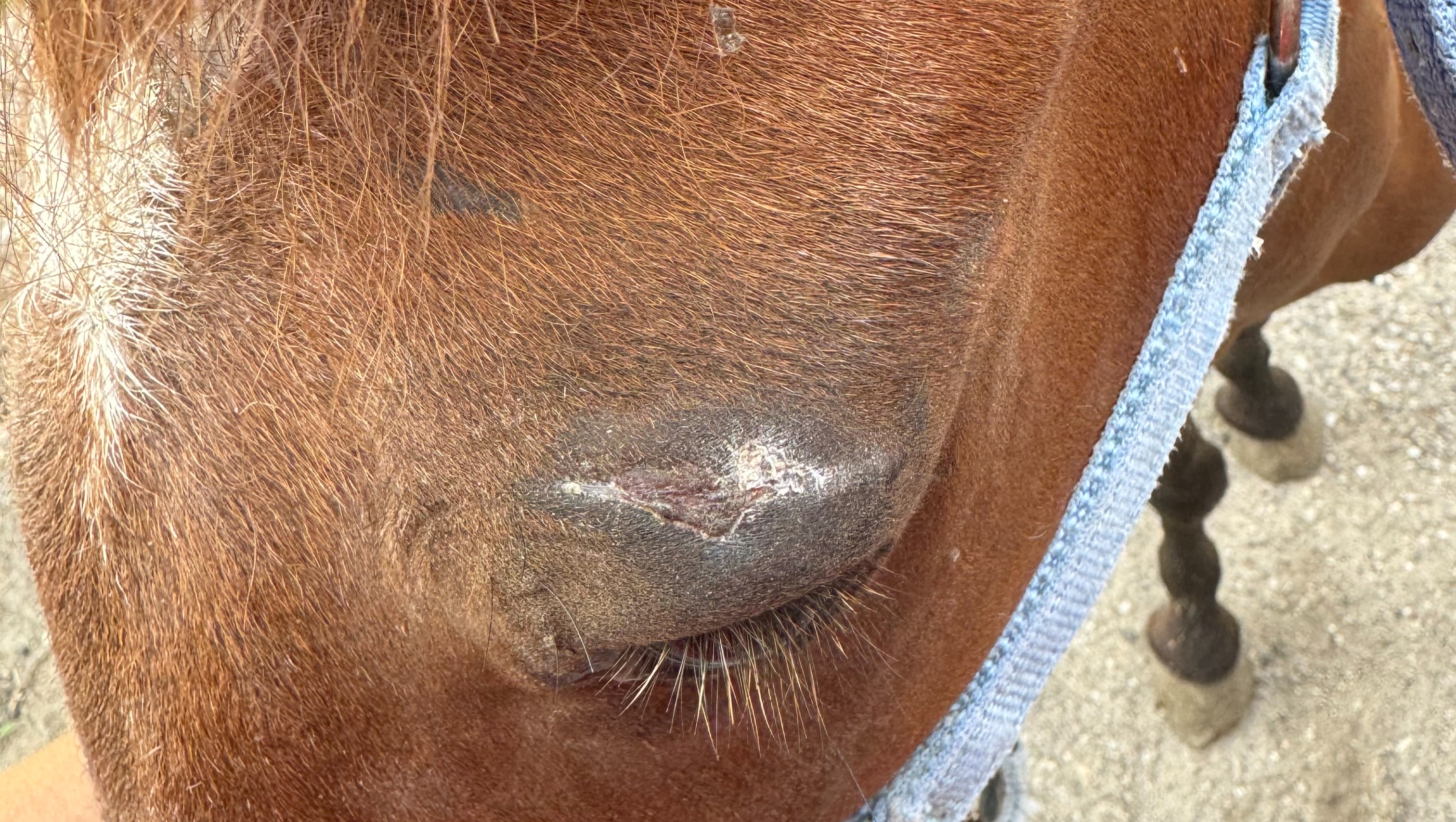 Laxi (formerly Tiny) continues to do well with gaining weight and integrating into the herd of larger horses. Unfortunately, he's not doing great on the medical front and we don't have any answers yet. A couple of weeks ago, x-rays showed a large mass had pushed into his teeth and deviated his septum. The next step was a CT scan and biopsy to determine more information about the extent and type of the mass.