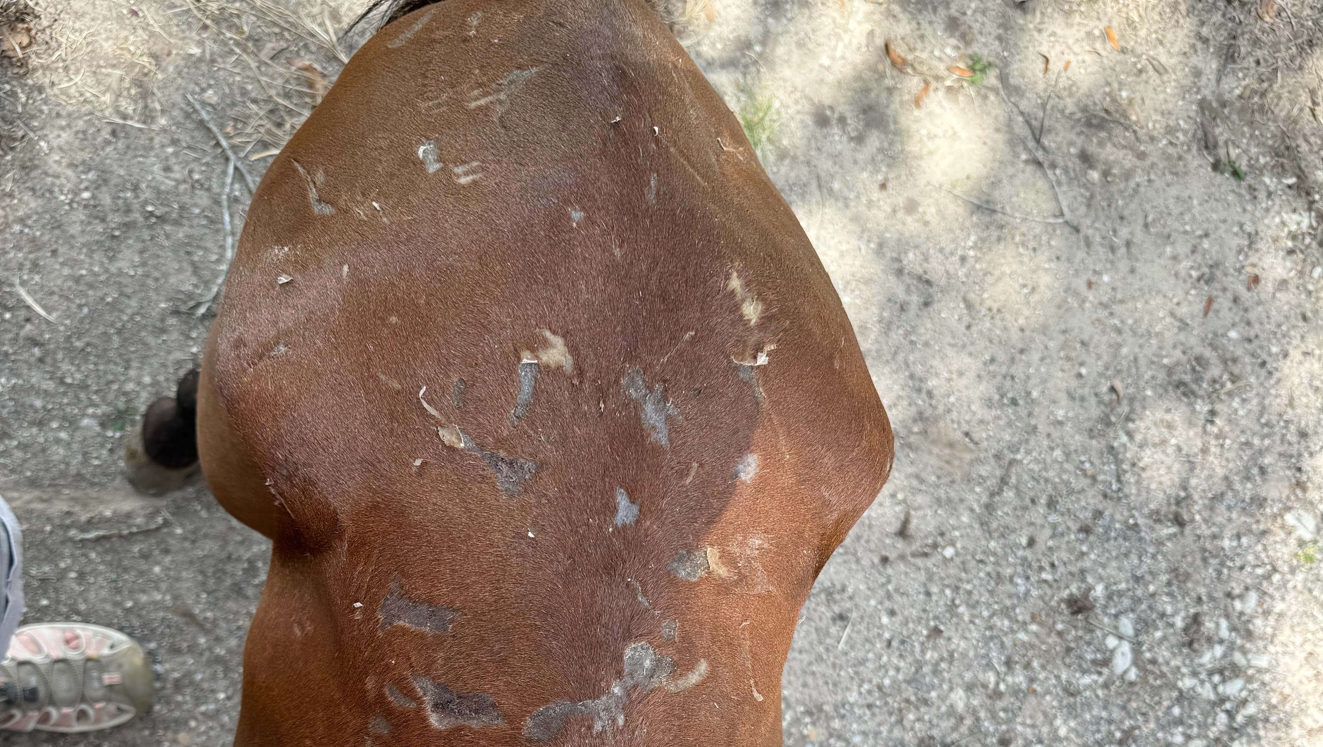 - He was covered in scrapes and cuts from being beaten up by other horses in the kill-pen, likely due to competition for food