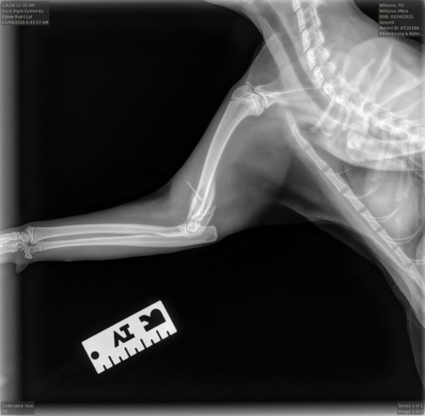 Ti Ti is our sweet 11-month-old kitten, and she means everything to my daughter. Recently, Ti Ti suffered a serious injury—she broke the humerus bone in her front leg. We were devastated to learn that surgery to repair the bone would require a specialist and is far beyond what we can afford. Because of this, the only option left is to have her leg amputated, which comes with its own challenges and costs.