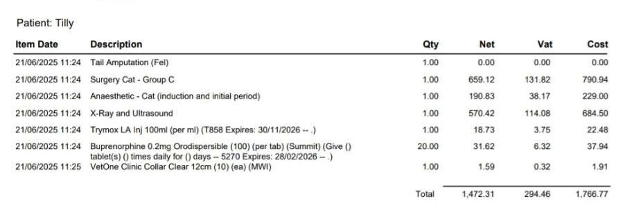 After nearly three months of steroids and treatments for anaemia, the vets have discovered that Tilly’s body is using all of its energy to fight off necrosis in her tail which is worsening her other conditions. If left untreated this could cause her to develop diabetes, asthma, and worsen her anaemia.