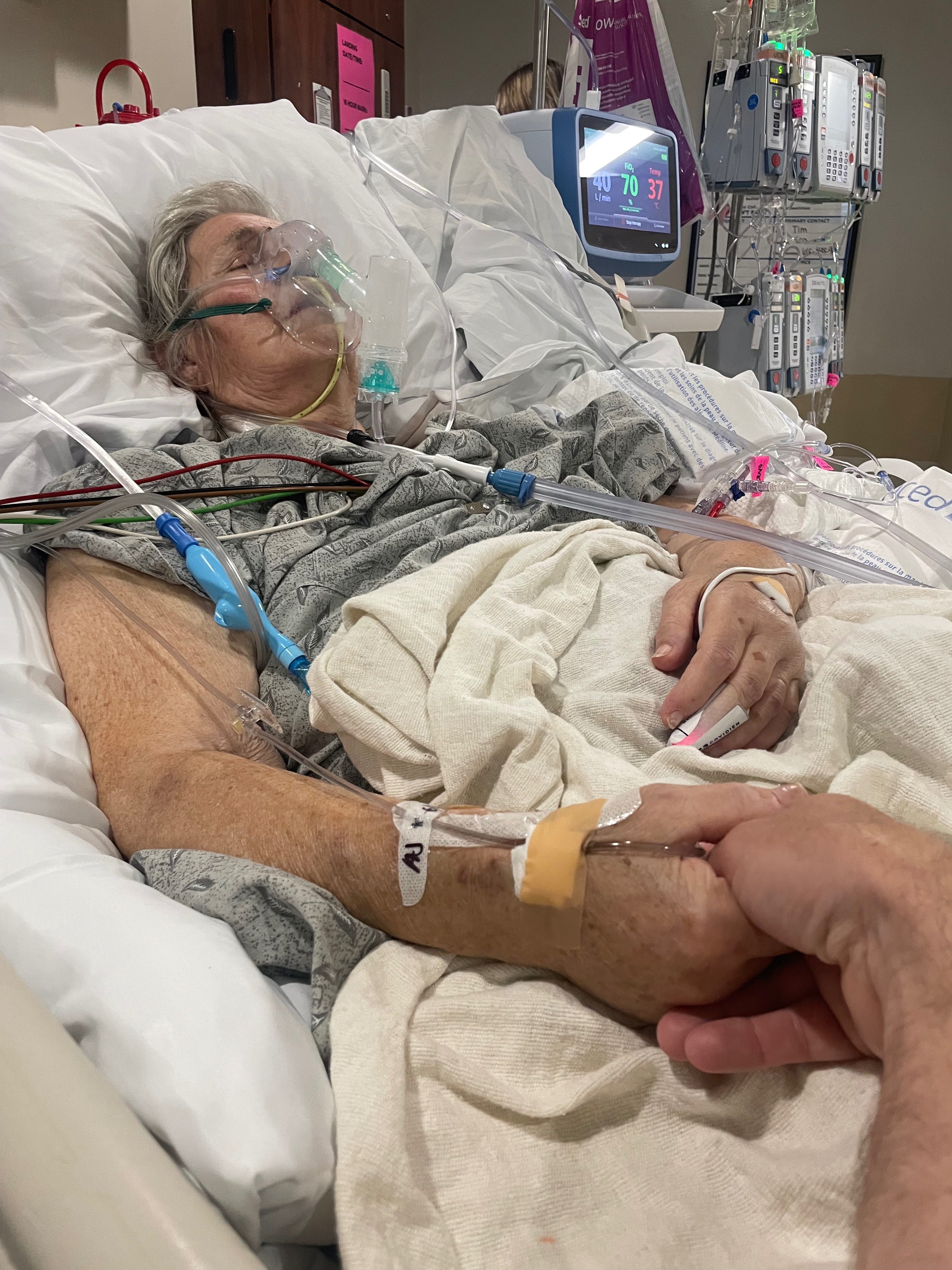 Though the surgery was a success thanks to the wonderful doctors at Tri Star Centennial Hospital in Nashville, she was only able to wake up from intubation and sedation for one day. Thanks be to God that I was able to be with her on that day. The rest of the time she remained on a ventilator and sedated.