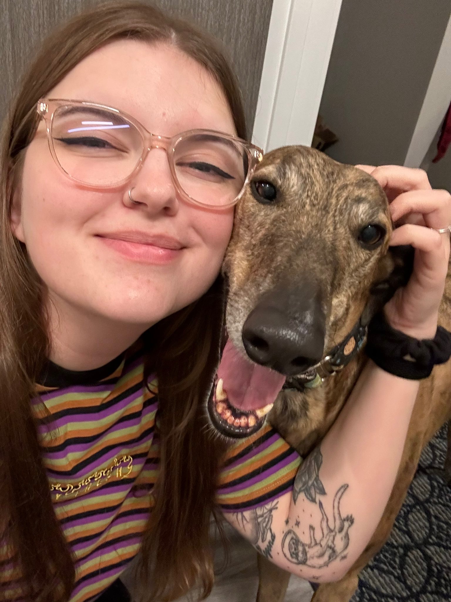 She’s spent the past year healing, caring for her two retired greyhounds, and preparing to return to work in healthcare while struggling to make ends meet. Just as she started to rebuild, her living situation became unstable again, forcing her to move for the third time in less than a year.