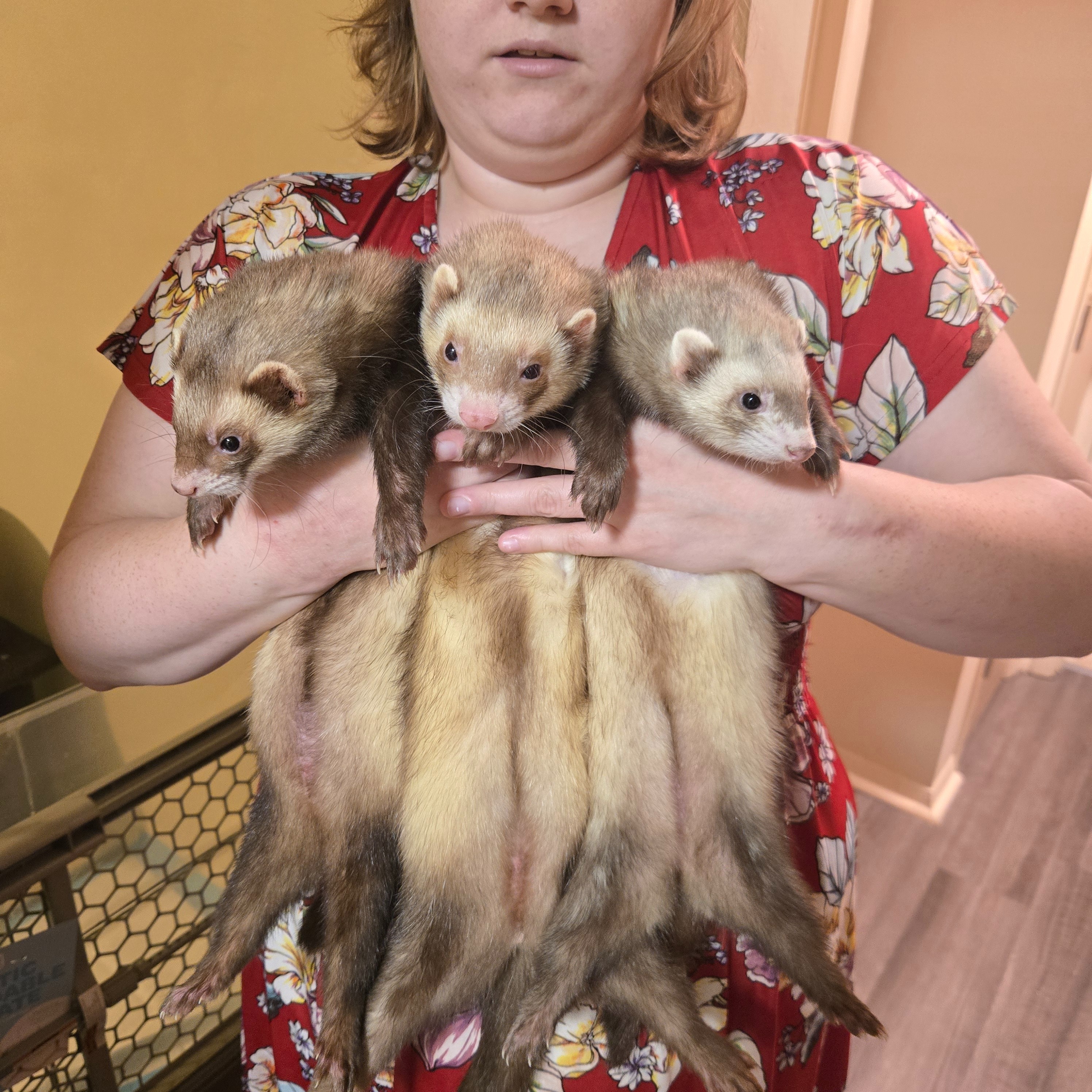 At the time, we had very little. I walked to work every single day because we didn’t have two cars, and I didn’t have my license. We were both working full-time jobs just to stay afloat, and every extra dollar we had went to food, litter, medicine, and vet visits. We skipped meals to afford antibiotics. We stayed up all night syringe feeding sick ferrets, hoping they would pull through. We built makeshift cages out of whatever we could find just to give them space and comfort. We had no donations, no fundraiser, and no family support. But we always made it work because giving up was never an option.