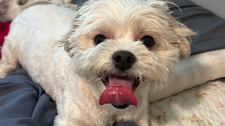 Toby is a 7-year-old Maltese mix who loves any human he comes across. He loves cuddles, is a lil clumsy, and is my bestest friend.