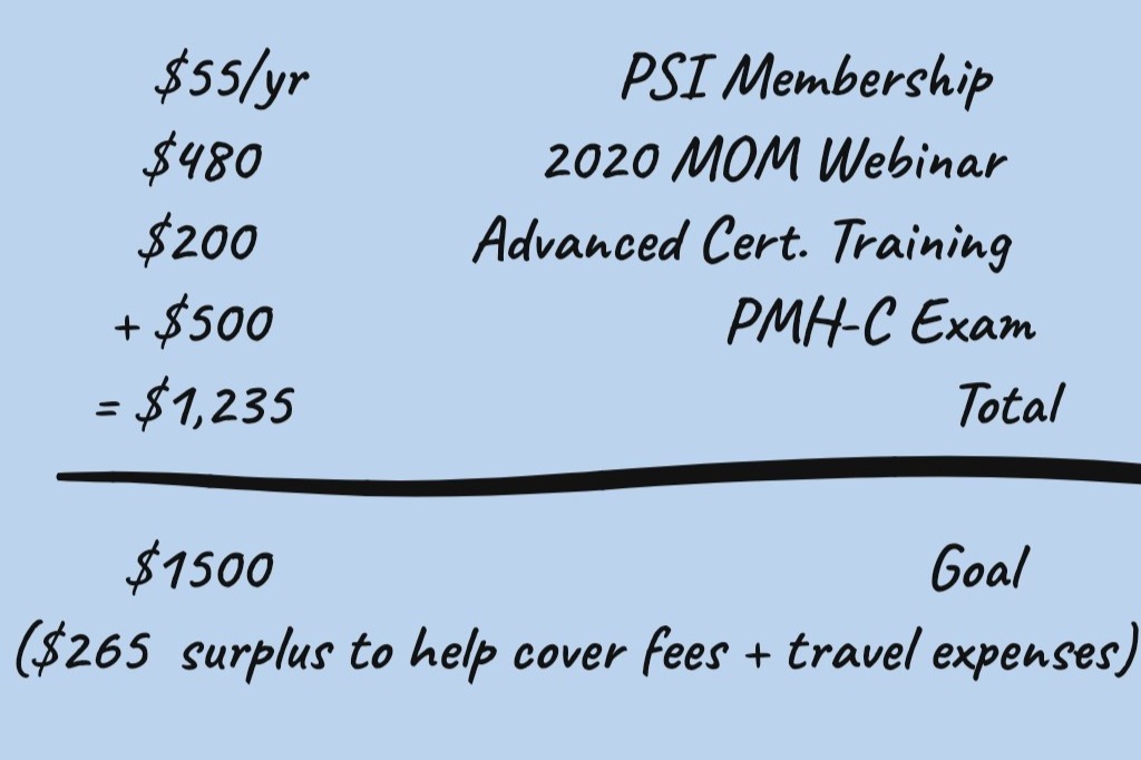 I will then take the Perinatal Mood and Anxiety Certificate Course. This is my first pre-requisite and my most immediate financial need. I must enroll in the Maternal Mental Health Webinar Course by September 3, 2020.