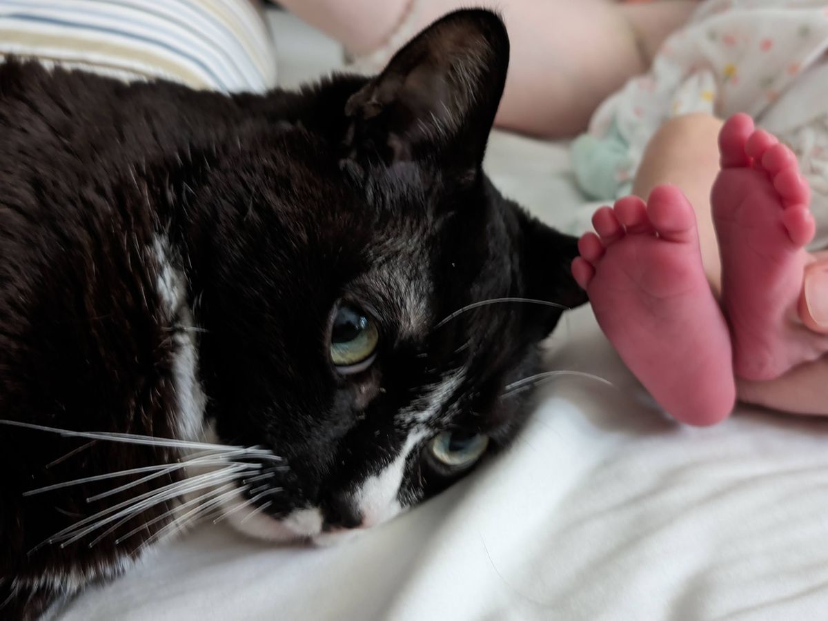 With the birth of our daughter 9 months ago, we have seen him come to love her. Her face lights up with pure joy whenever she sees him, and her giggles fill the room as she reaches out to pet him. They're building a beautiful bond, and we desperately want them to grow up together.