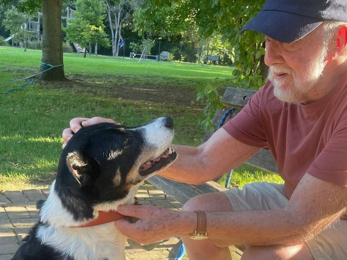 Meet truffles, a playful border collie cross with a gentle nature and a passion for treats. Truffles and her human companion, Pete, are regulars at Lyne Road Reserve of an afternoon but recently Truffles injured a leg and hasn't been able to get out much.