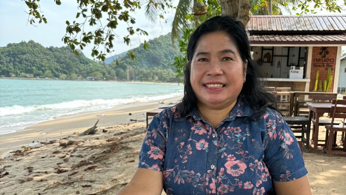 Tuenjai lives a simple life taking care of the family shrimp farm. She used to wake up early around 3-4am to feed the shrimp, and then get everything ready in the truck to distribute the shrimp bags to the customers, until she was back home after the deliveries around 6-7PM. She was in charge of the whole process and is known in the village for always smiling and making everyone feel happy.