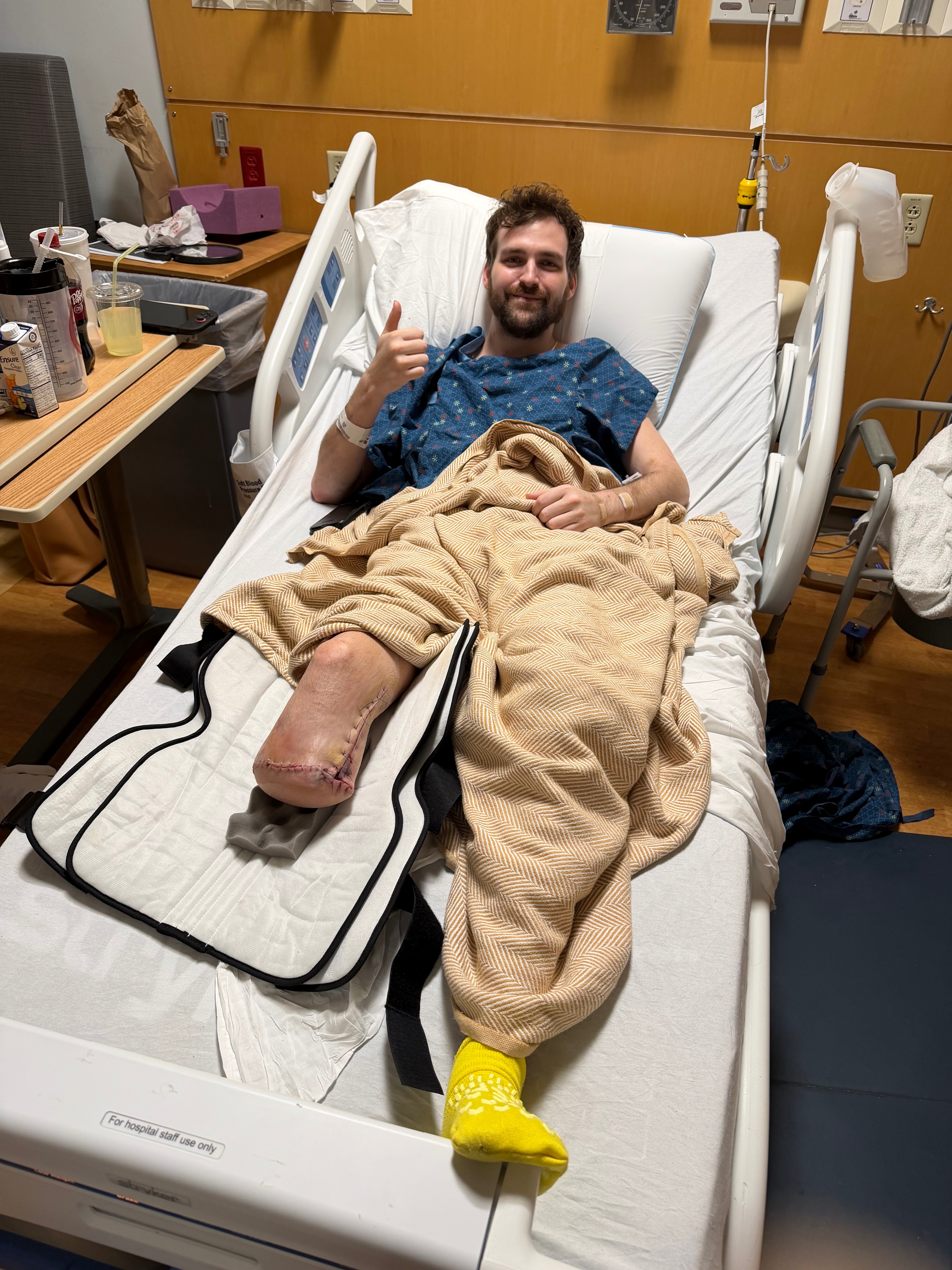 The financial burden is overwhelming. Between multiple emergency flights, surgeries, hospital stays, and ongoing rehabilitation, the medical bills are quickly piling up. On top of that, a prosthetic leg, something essential for Tyler to walk again, can cost tens of thousands of dollars along with fittings and future replacements.