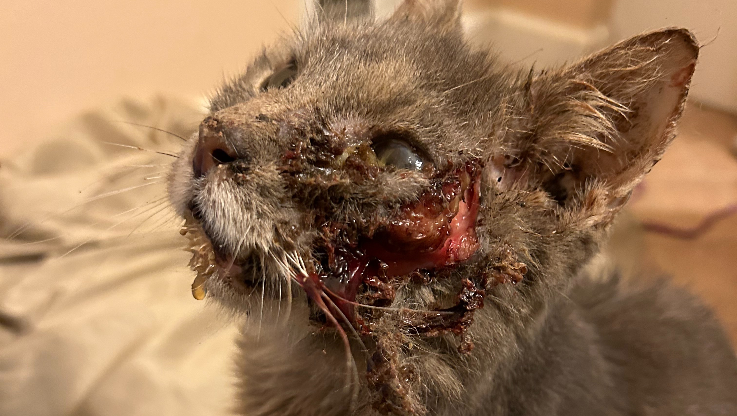 Hi, my name is Sam and this little guy is Tyson. I found him today and as far as we know, he has been like this for at least 4 days, maybe more. He is such a sweet and affectionate cat who loves being pet and cuddled. Currently, he is still walking, eating, and drinking water, which seems like a good sign. We are taking him to the Sacramento SPCA Hospital tomorrow morning to get him help. Unfortunately, I do not have the funds to help get him fixed and I really do not want to see him be put down. Please help me raise funds to save him and give him a better life than he's already had.