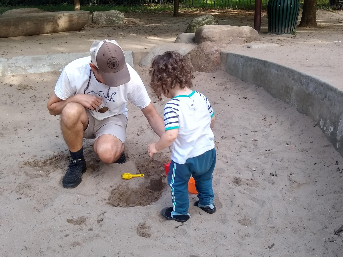 The Parks Department is responsible for the upkeep of playgrounds, but not the replenishment of sand. That is up to us.