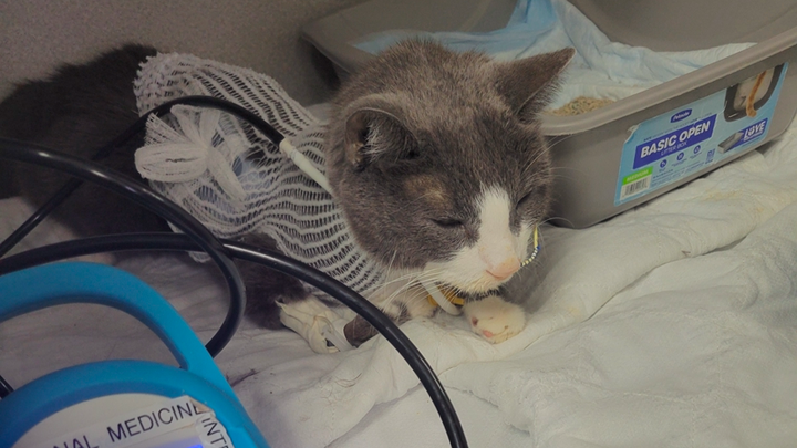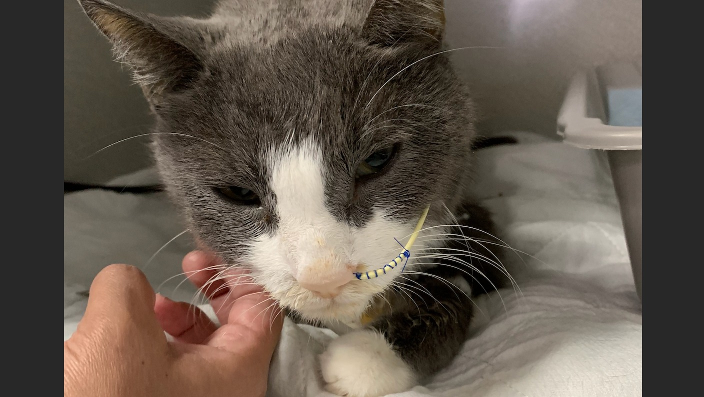 On Wednesday, January 29th, my wife and I rushed Ollie to the ER. He was throwing up, stumbling, and really weak. We were really scared and did not know what was wrong with him. It turns out he has a severe gastrointestinal disease, he was really dehydrated, and in critical condition for almost 24 hours. We stayed up all night hoping not to get a phone call saying Ollie was gone. We were not sure if he was going to make it. On Thursday, we were told we needed to come say our goodbyes. He was very weak and disoriented; they didn't think he would make it. Fortunately Ollie, like us, is stronger than people think he is. After removing over 100mL of fluid from his belly, he was stable enough today to wake up and we've been traveling up to north county every chance we get to be with him. Although he is slowly improving, he's still not eating on his own, has inflammation in his stomach, and they are not sure if he had a stroke. His body temperature got so low they asked us to decide if we wanted to continue treatment. We were devastated but decided not to give up on him. We know how strong he is.