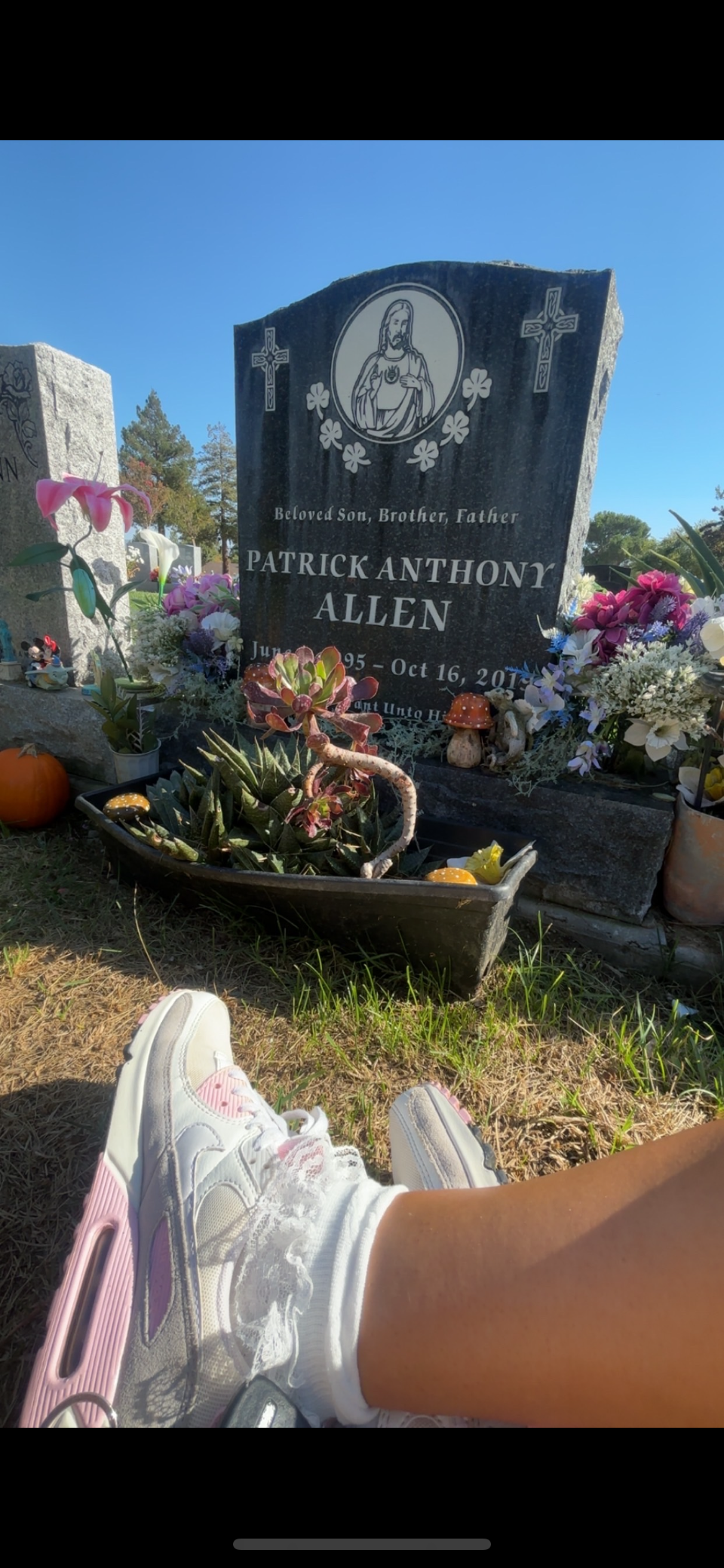 Recently, we received permission from our diocese to create a family plot on our land. Our dream is to lay Patrick to rest here, close to his family.