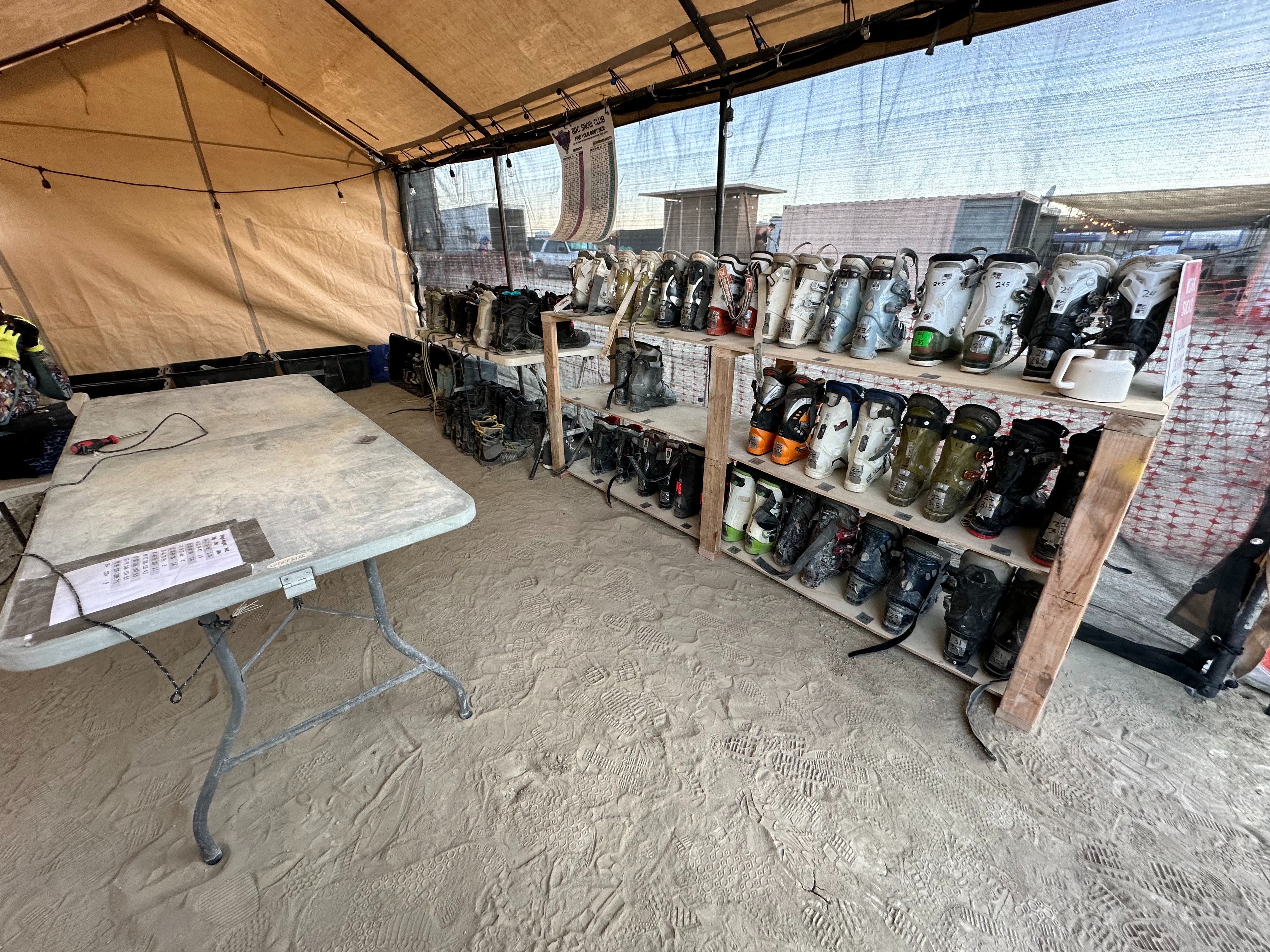 - On-playa equipment donations (especially men’s snowboard bindings, snowboards, boots, helmets, and saucer sleds)
