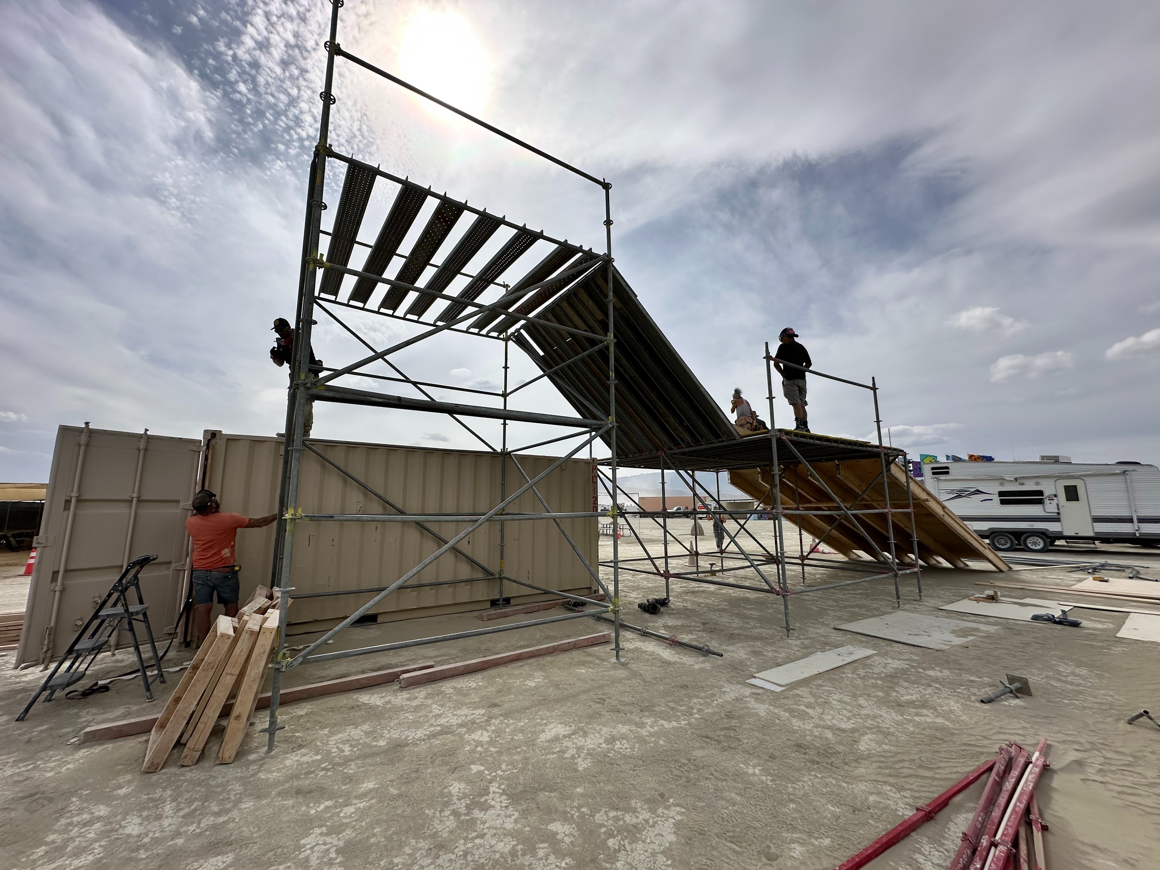 Each year, we’ve fundraised, hustled, and hand-built this camp from scratch. In 2023, we made big waves and got a lot of excited attention. We were absolutely floored when nearly half the people who rode the slope the first year brought their own equipment to playa! Then in 2024, we made improvements by adding a removable kicker and teaming up with our sister camp, BRC Ski Resort, who brought the après-ski dance floor vibes and disco gondola last year.