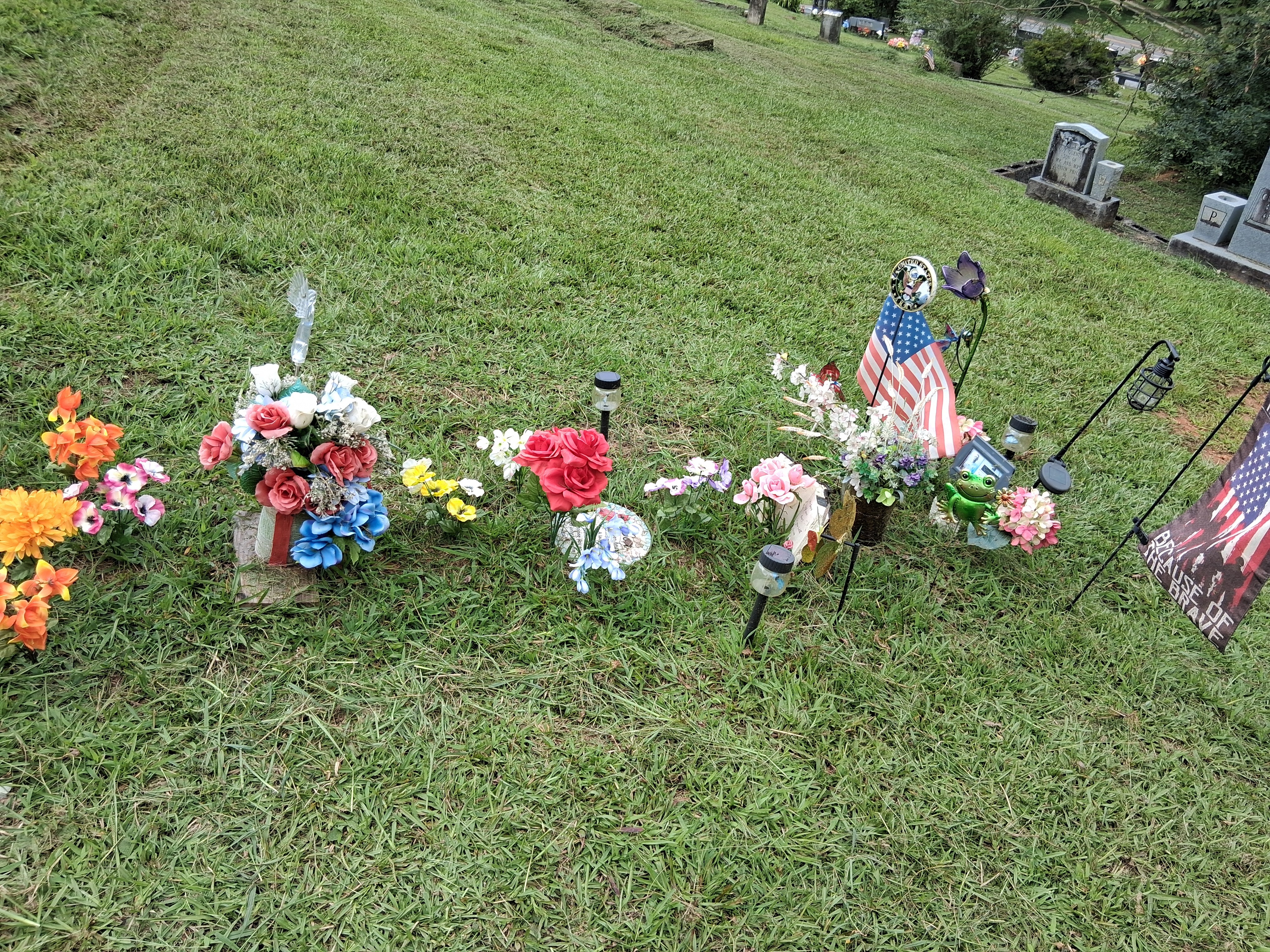 My friends have suggested I come to all of you and ask for help raising the funds to help finish his graveside. He needs a headstone, and I want to do an encasement around his grave and fill it in with peat gravel. Also, I want to add a bench at some point if possible, and to help with further upkeep. Only give if you can afford to. I know times are hard on everyone, so I understand if you can't. He was a brave soldier who loved everyone. He never met an enemy or a stranger. I want to honor him. I want to create the most beautiful and peaceful place so we can all visit him always. Thank you and God bless you.