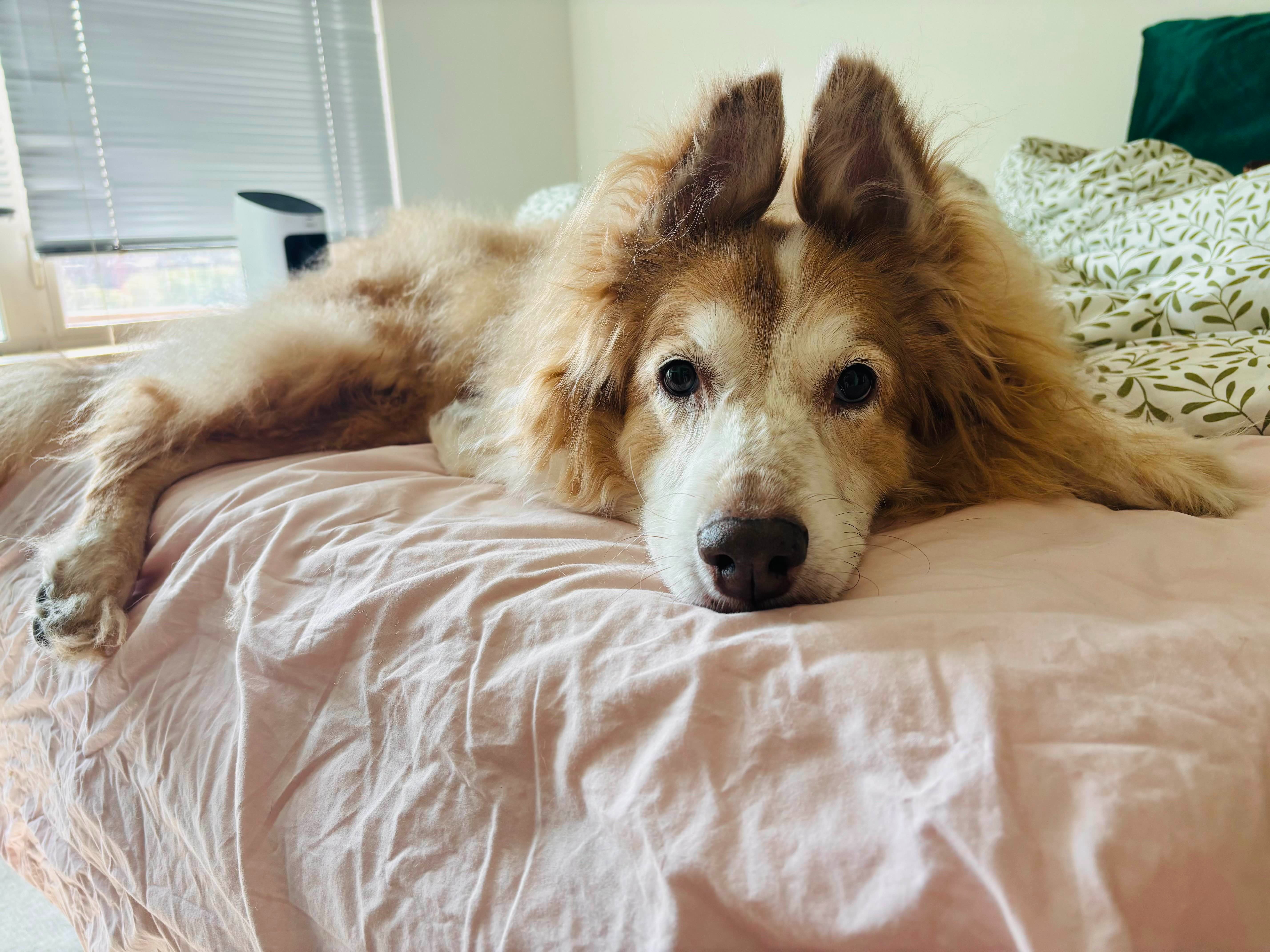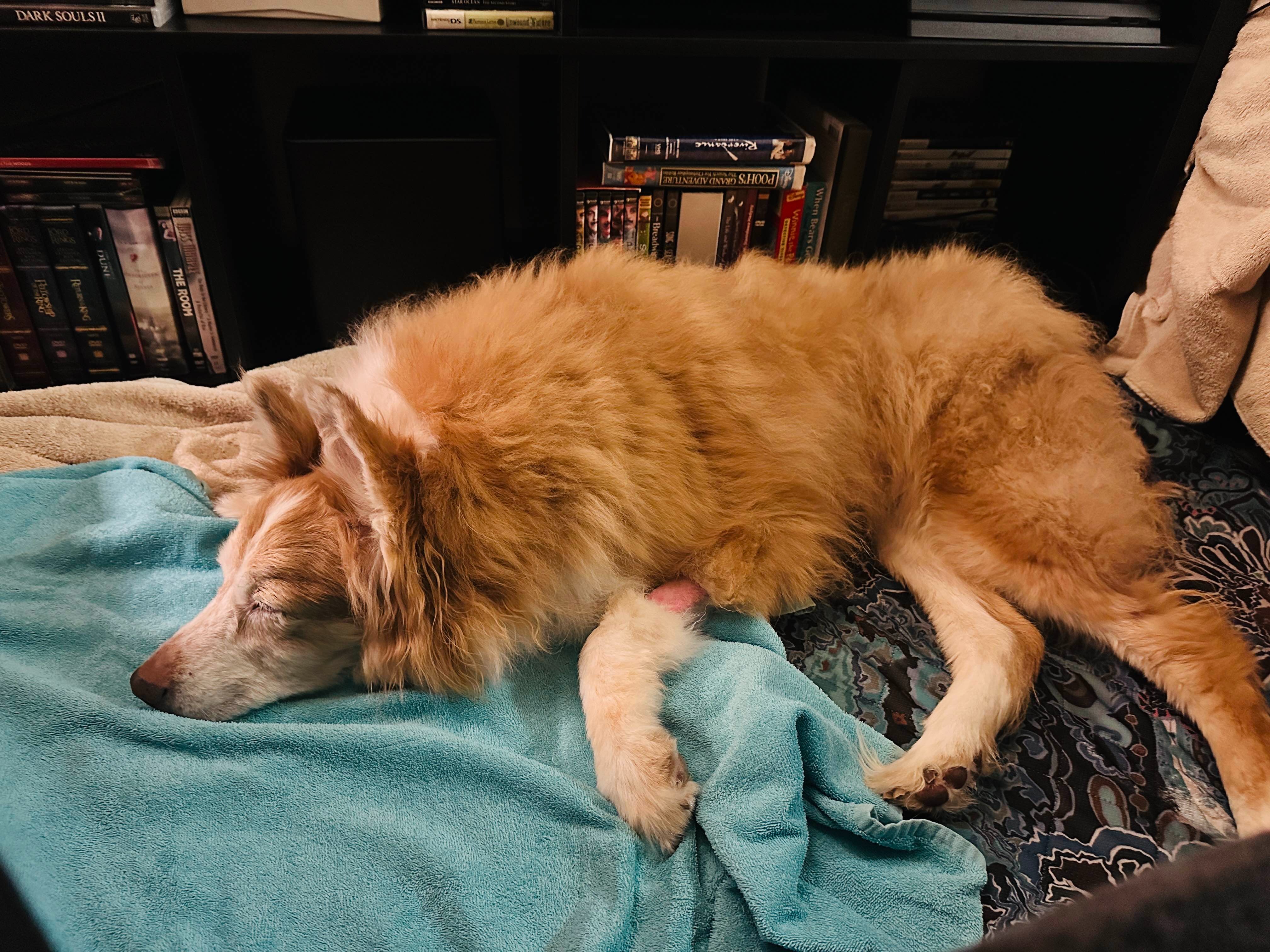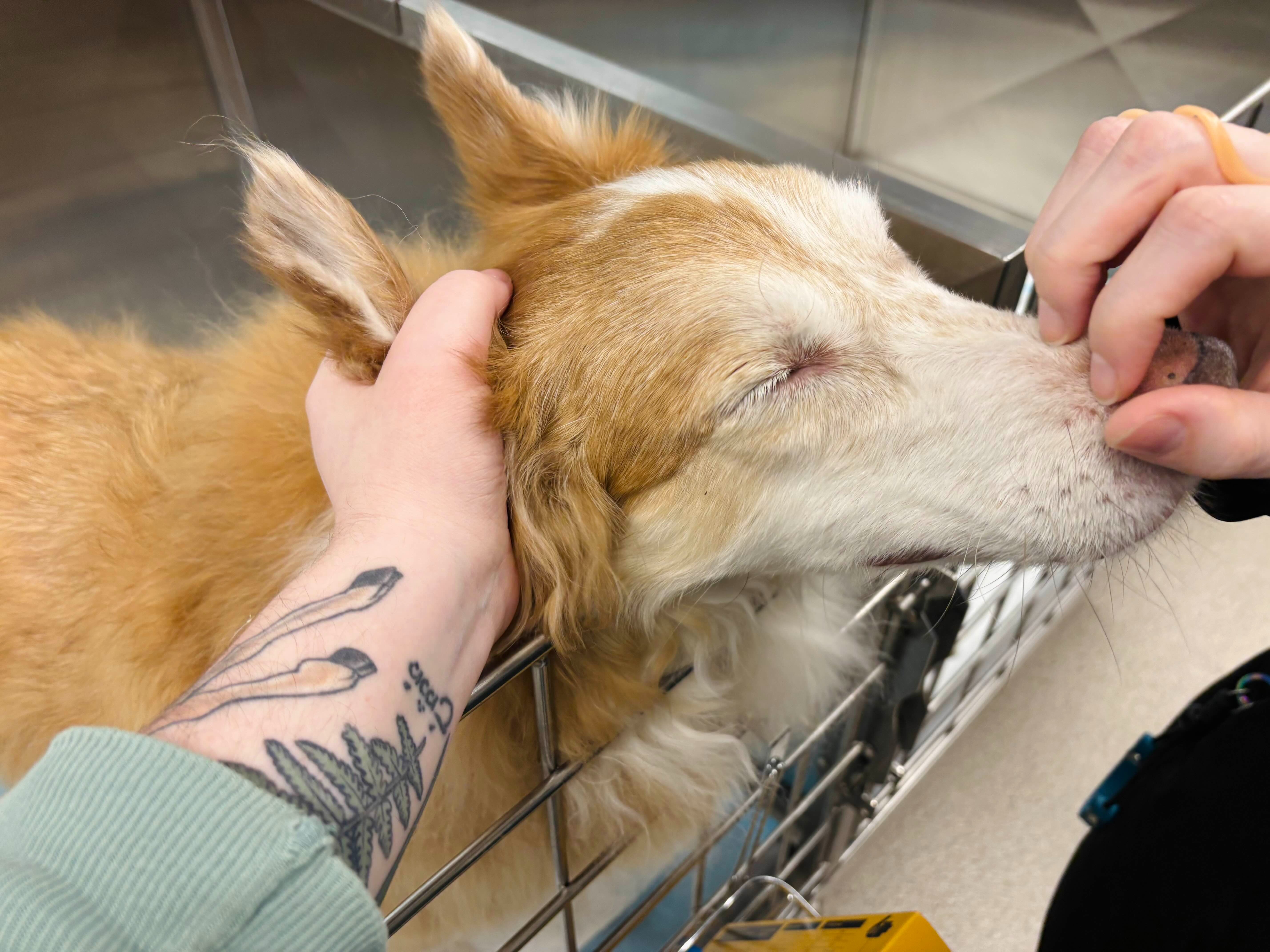 As you may know our precious angel baby, mascot of the stream, and Supreme Sassmaster of the Borkhole, Elanor recently had to go to the emergency vet and ended up staying 4 days getting treatment for hemorrhagic gastroenteritis and having further tests done to make sure there was nothing critical that they may have missed that would further impact her health in the future. Elanor (Smells/Smellanor/Bean), is the 10 year old collie-mix retired service dog of streamer FeyDaley. Fey adopted Elanor as a puppy while working on their Masters degree and Smells has been faithfully at their side through trials and triumphs. To say she's a vital part of our family would be an understatement