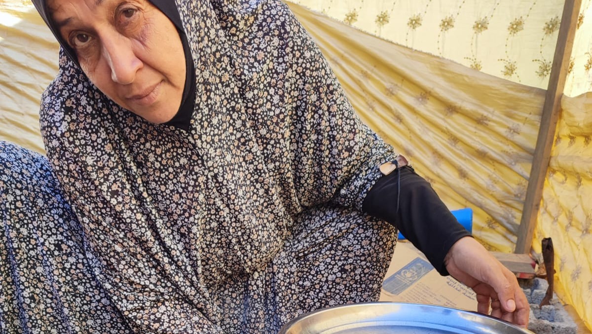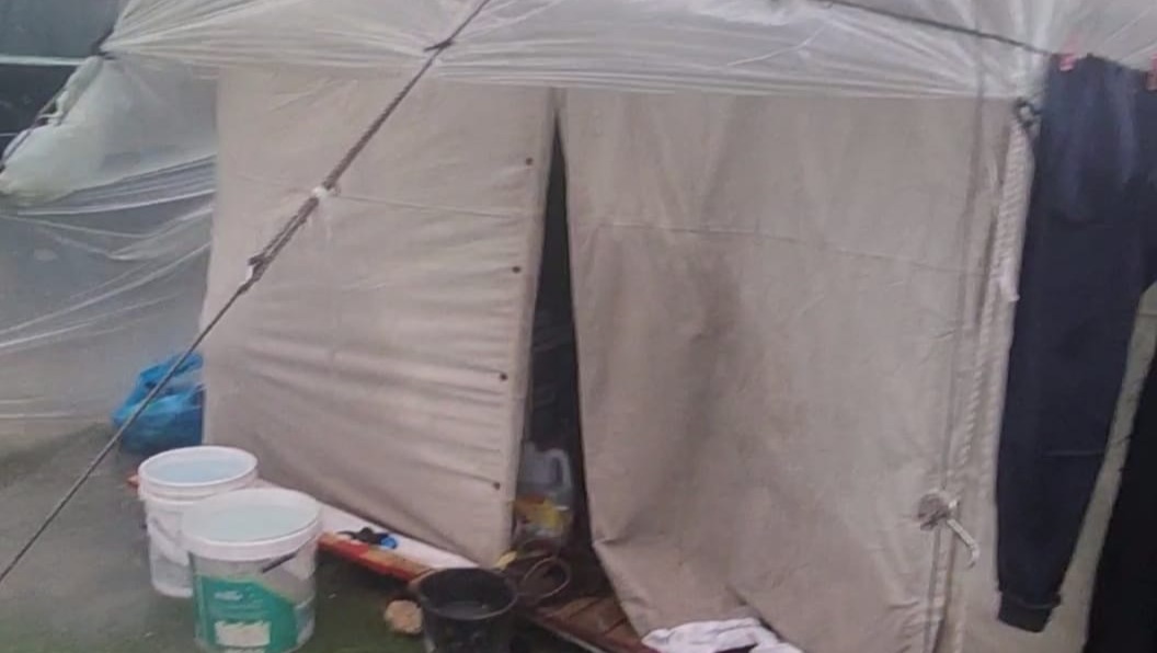 We are currently living huddled in a small tent me, my mother, my two brothers, two sisters in law and 5 kids.