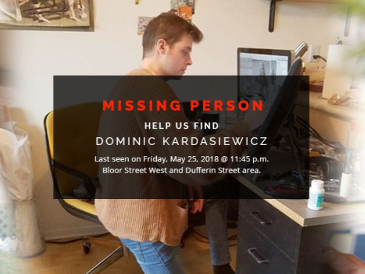 We need help finding Dominic Kardasiewicz. Dominic is a 33-year-old male who lives and works in downtown Toronto. He was out with friends on the night of Friday May 25, 2018 in the Landsowne and Bloor Street West area around 11:50pm. Nobody has seen him since.