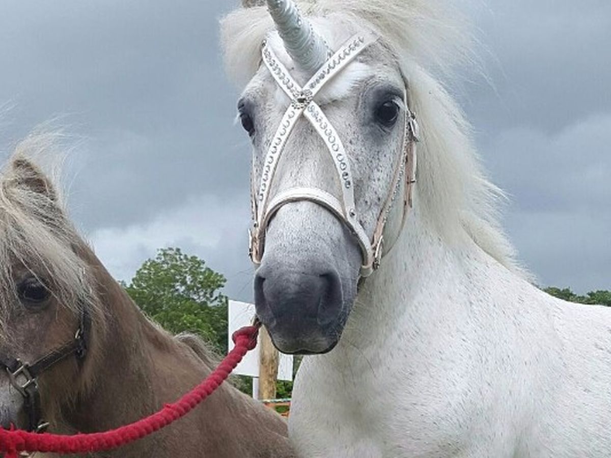 The ponies; Munchkin, (came from Animal Heaven Animal Rescue) shetland pony 37 inches tall, grey mare 16 years old and 'Ireland's Only Unicorn'