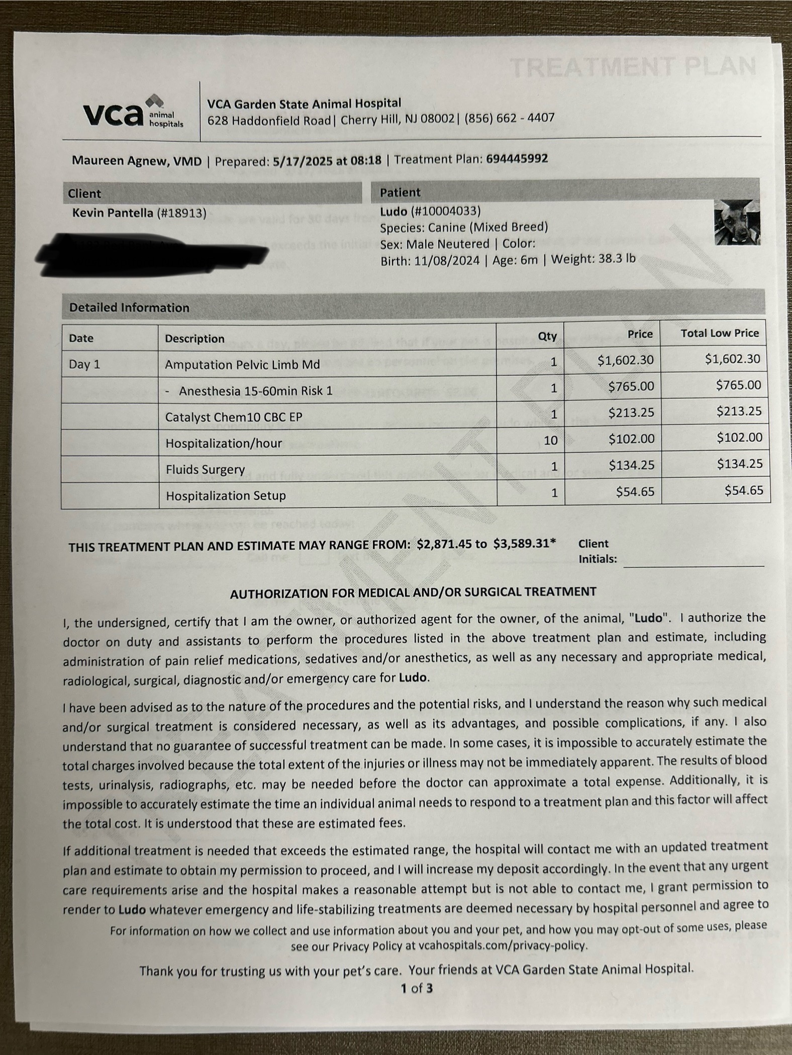 We recently rescued a puppy from ACCT Philly with a strangulation wound to his leg. The vets at VCA Garden State were hopeful it would heal but due to the extent of his injuries, they thinks it’s in his best interest to amputate it. We weren’t expecting an amputation, but his strangulation wound is just not healing. Please help us get Ludo the surgery he deserves so he can live a long, happy life with us. Any donation to help Ludo would be greatly appreciated. Thank you.