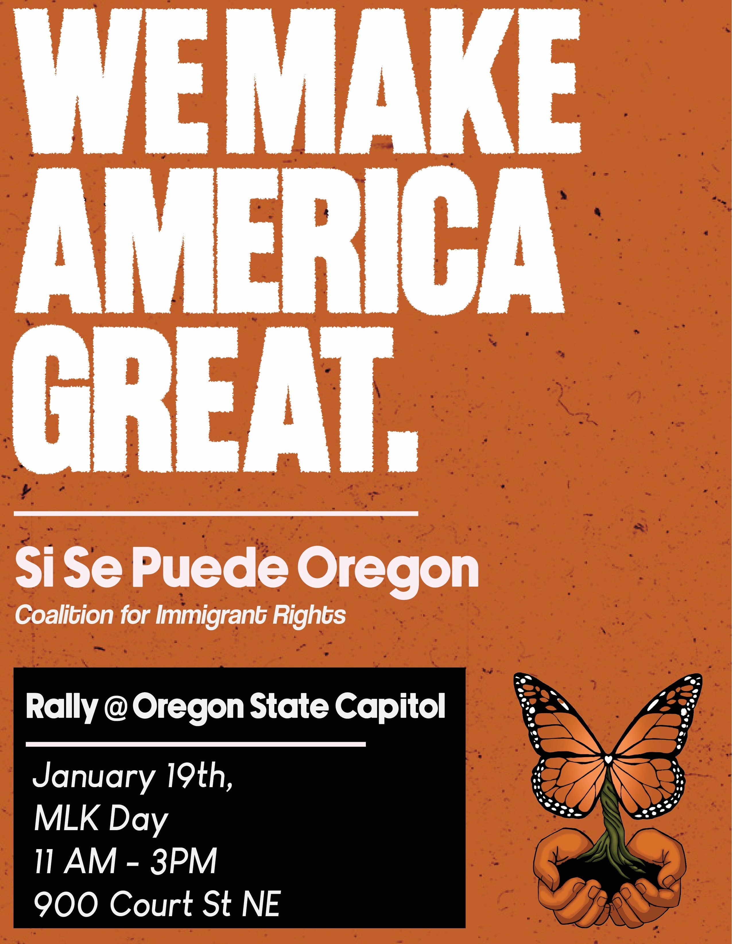 On Monday, January 19, community members from across Oregon will gather at the Oregon State Capitol in Salem for a Martin Luther King Jr. Day rally titled, “We Make America Great.” This student-led rally, organized by Si Se Puede Oregon in partnership with Mecha and other community organizations, is calling for justice, dignity, and protection for Oregon’s immigrant and mixed-status communities.